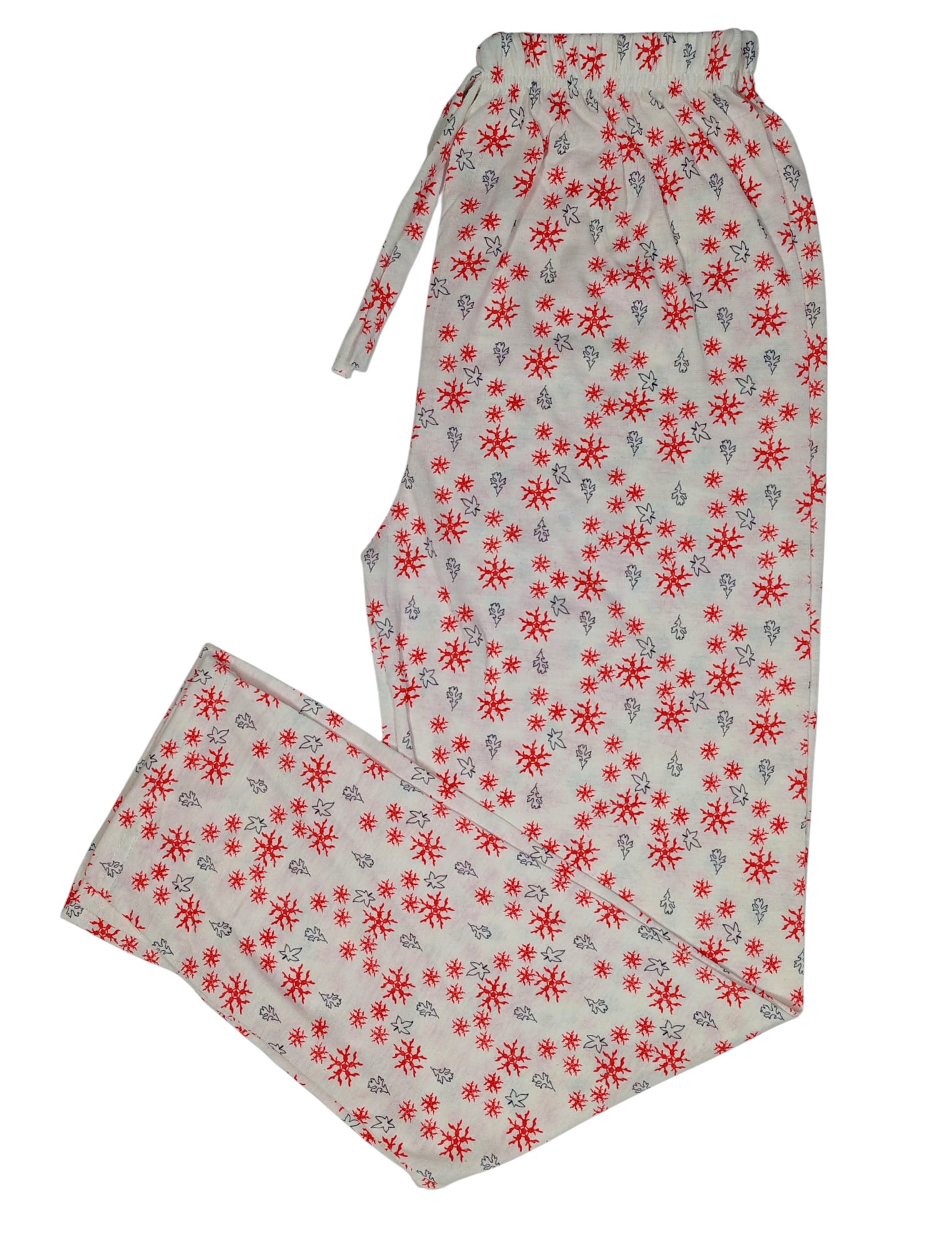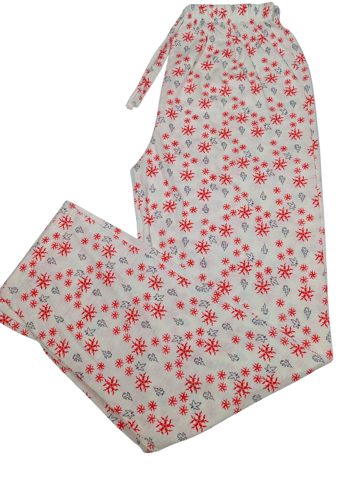 Pantaloni pijama dama Craciun,Culoare Alb cu Rosu,Engros