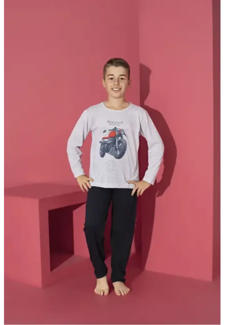 Pijama Băieți cu Mânecă Lungă și Pantaloni Lungi, Imprimeu Motoretă,Culoare Gri,Engros