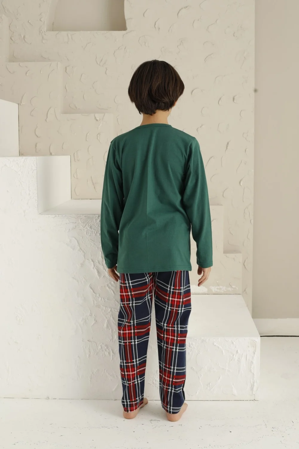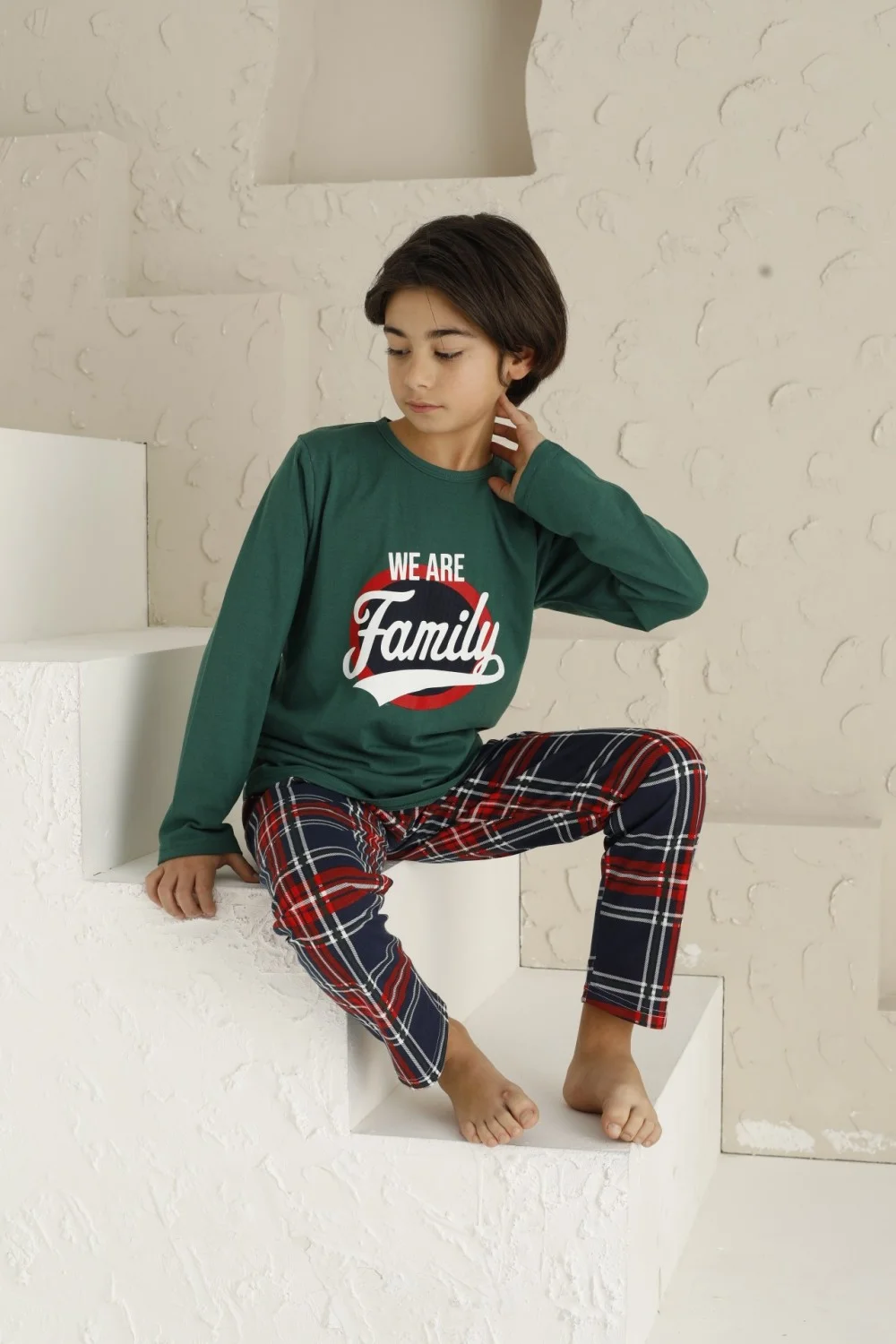 Pijama Băieți, Mânecă Lungă si Pantaloni Lungi, Imprimeu We Are Family,Culoare Verde,Engros