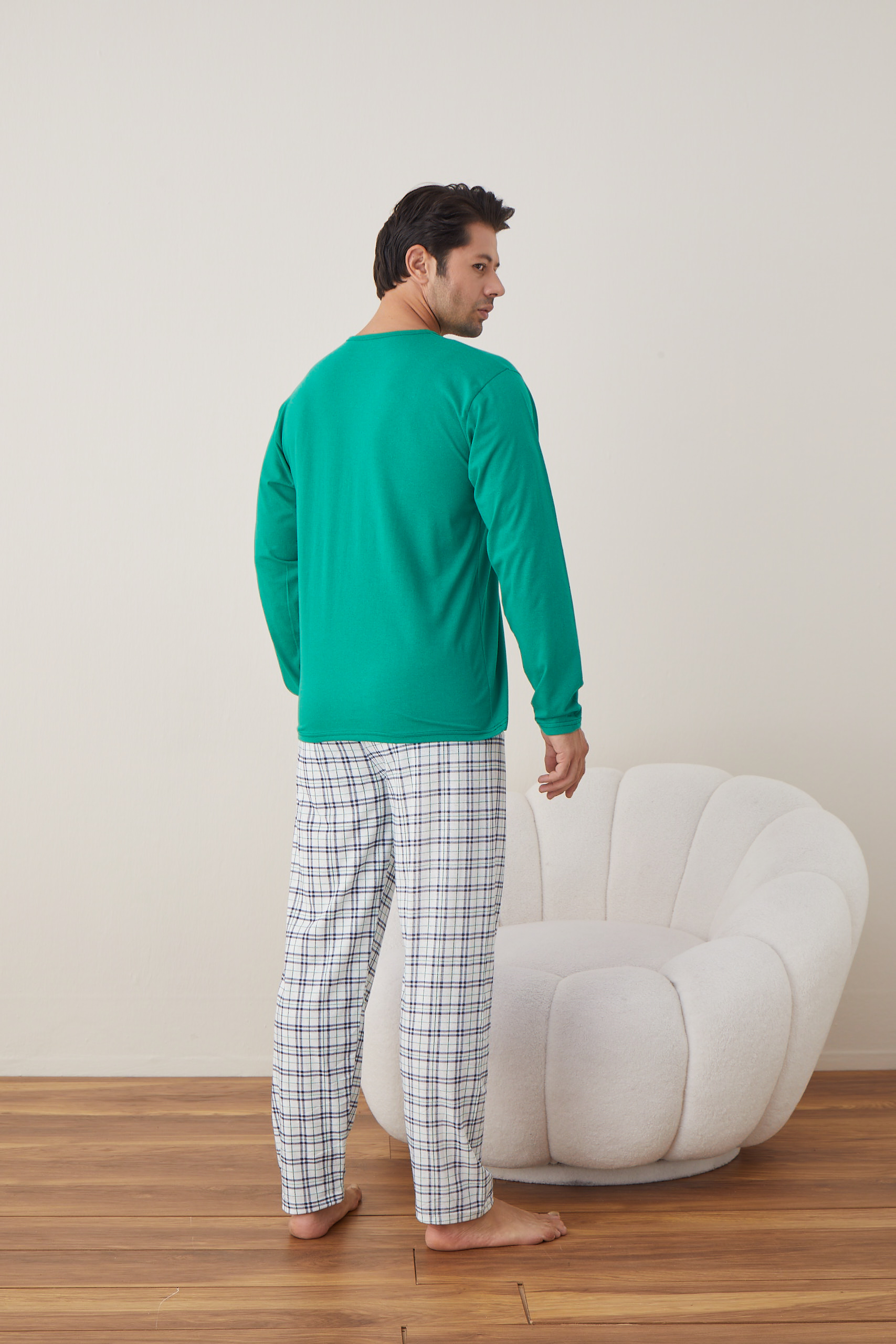 Pijama barbati Craciun , maneca lunga ,pantaloni lungi,Culoare Verde ,Engros
