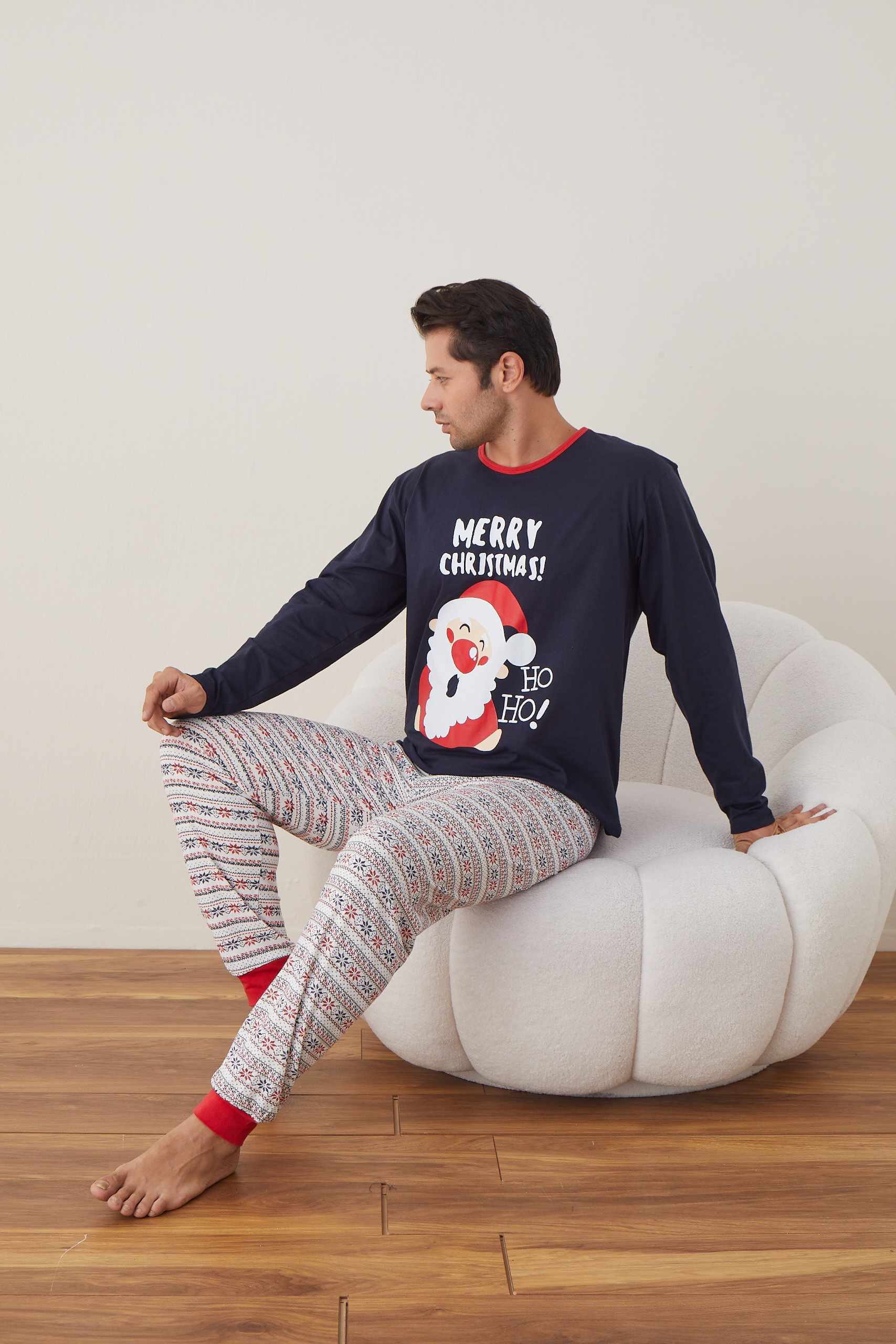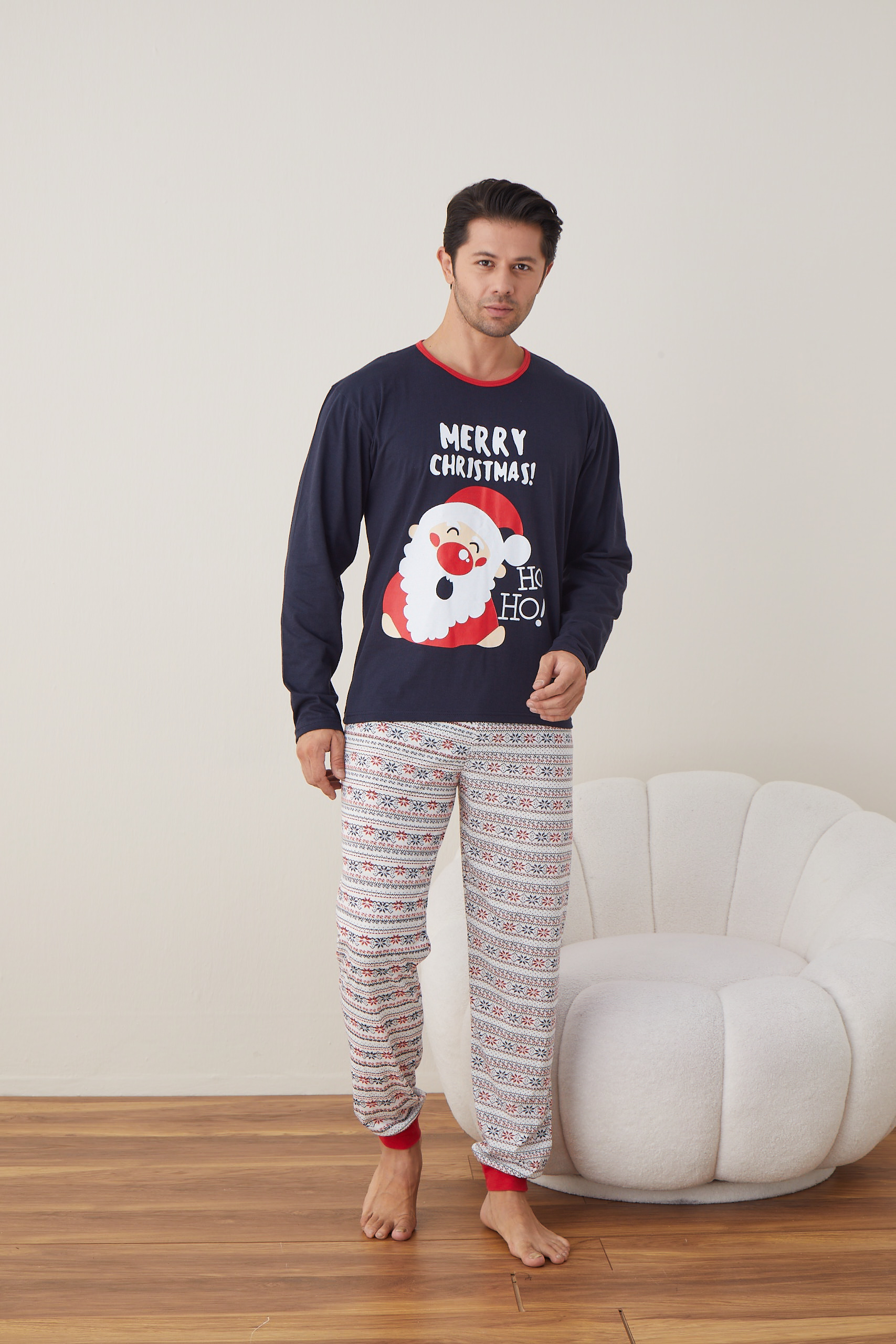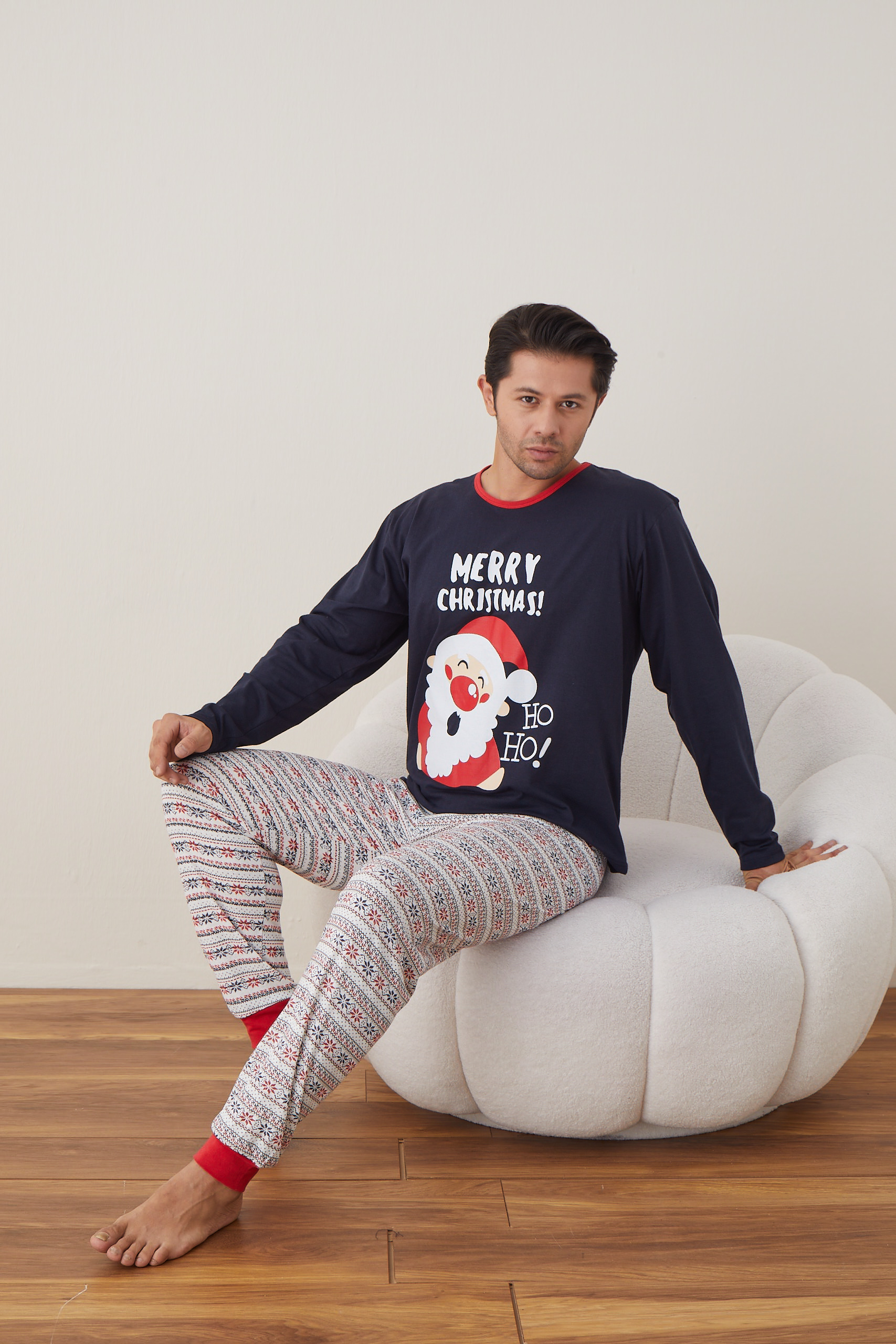 Pijama barbati Craciun " MERRY CHRISMAS" maneca lunga ,pantaloni lungi,Culoare Bleumarin, Engros