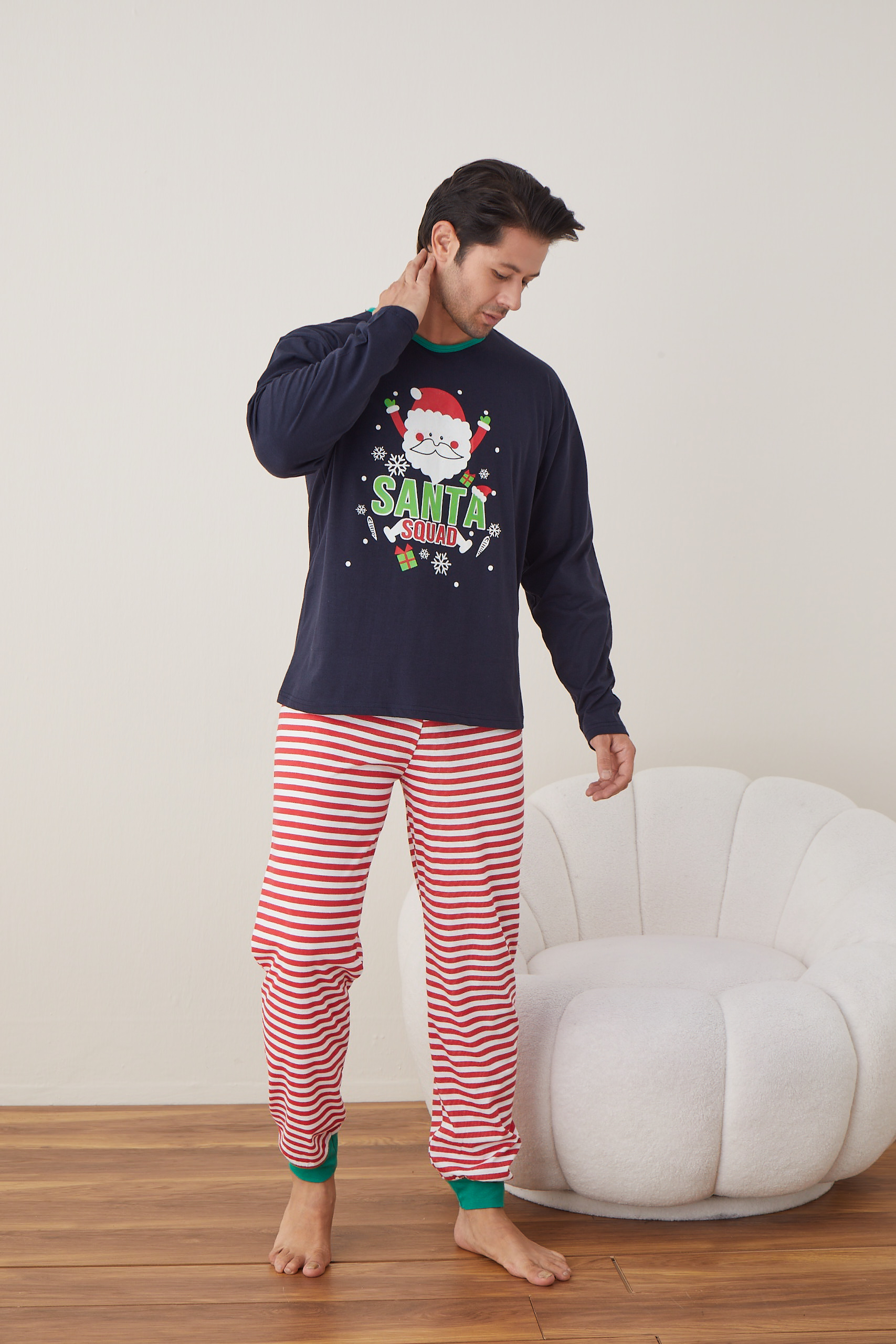 Pijama bărbătească de Crăciun, ideală pentru serile reci de iarnă. Setul include bluză cu mânecă lungă și pantaloni lungi. Materialul moale și plăcut la atingere oferă confort maxim, fiind potrivit atât pentru purtare zilnică, cât și ca idee de cadou de sărbători. Disponibil en-gros.