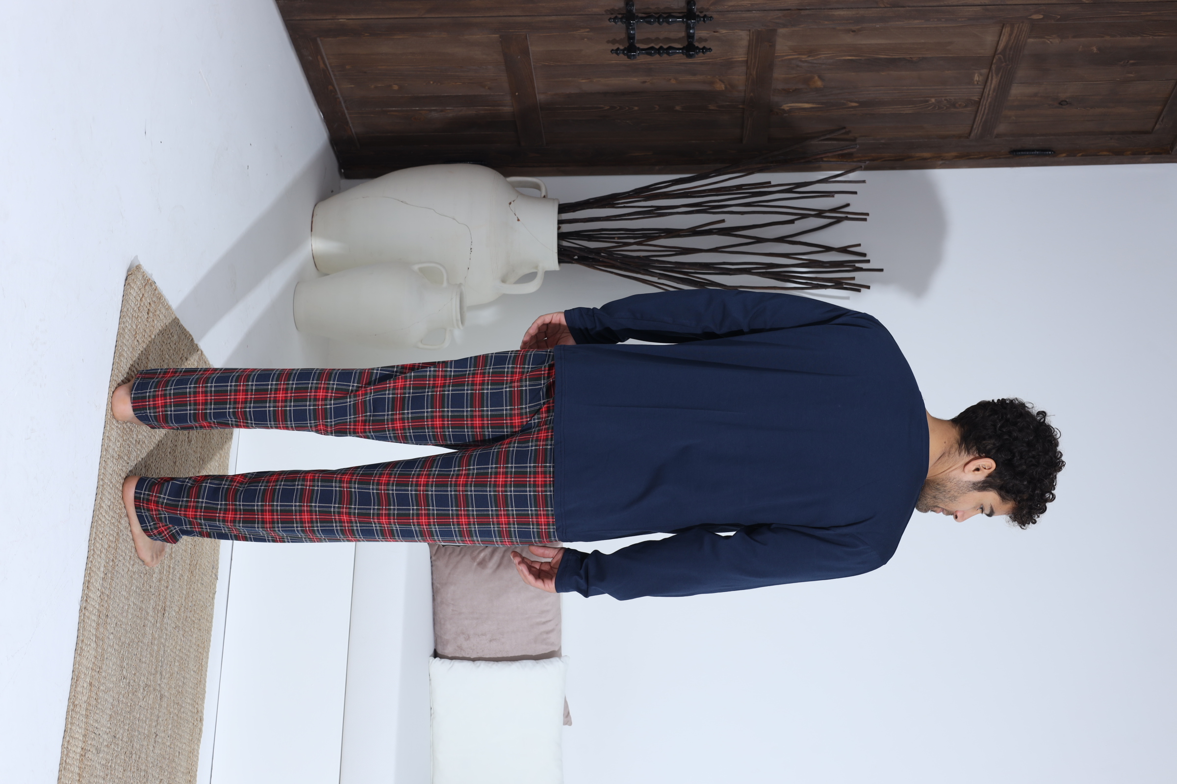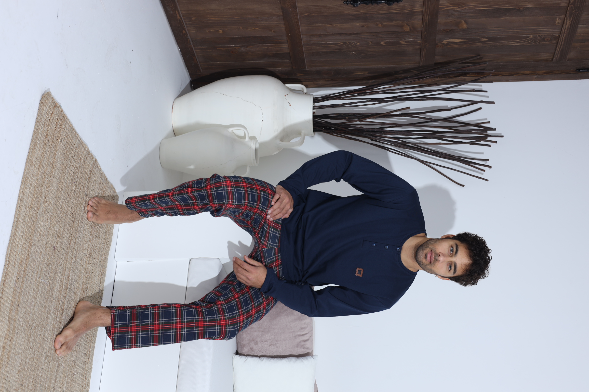 Pijama Barbati ,Maneca si Pantaloni Lungi,Culoare Bleumarin cu Rosu ,Engros