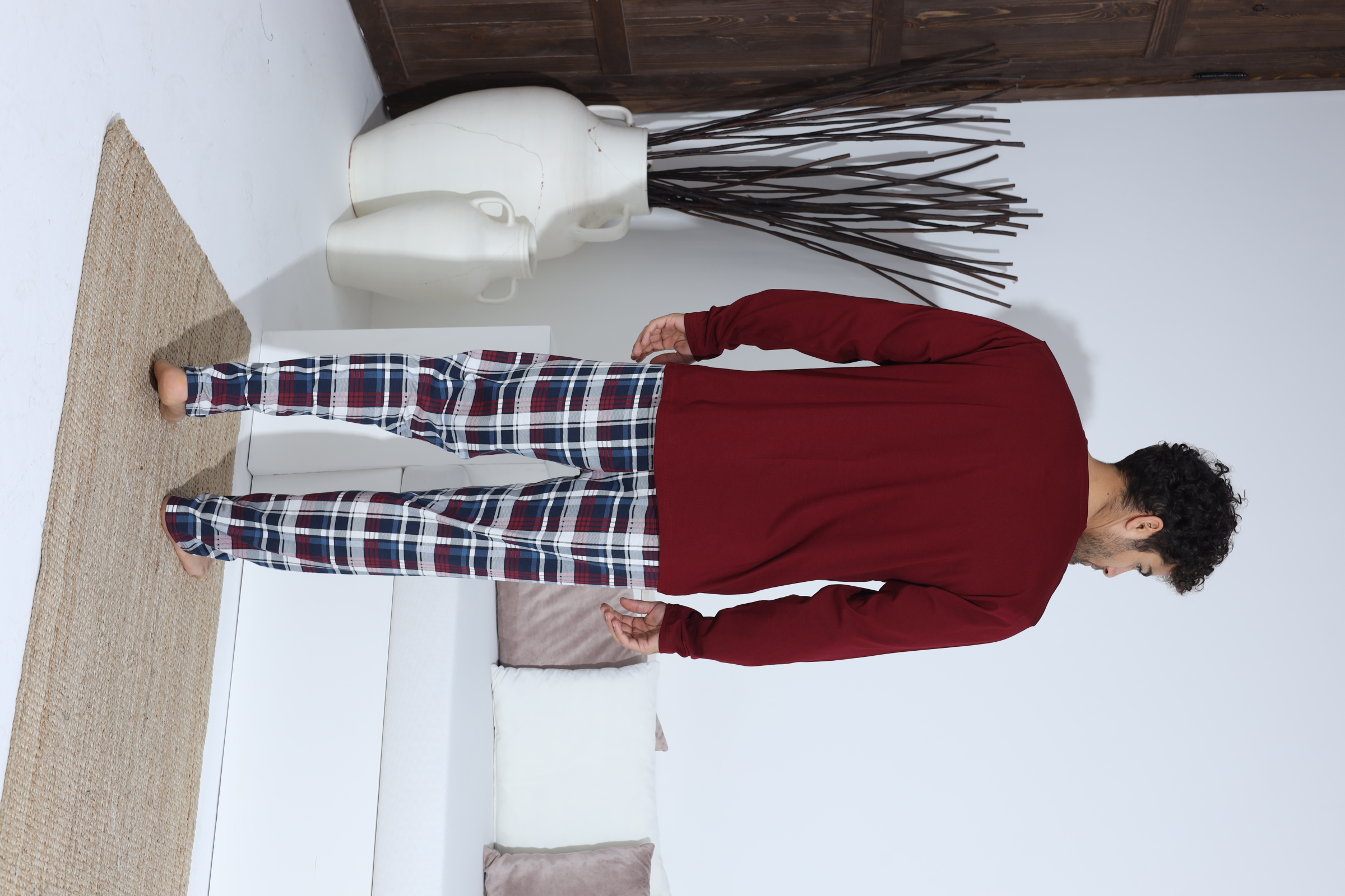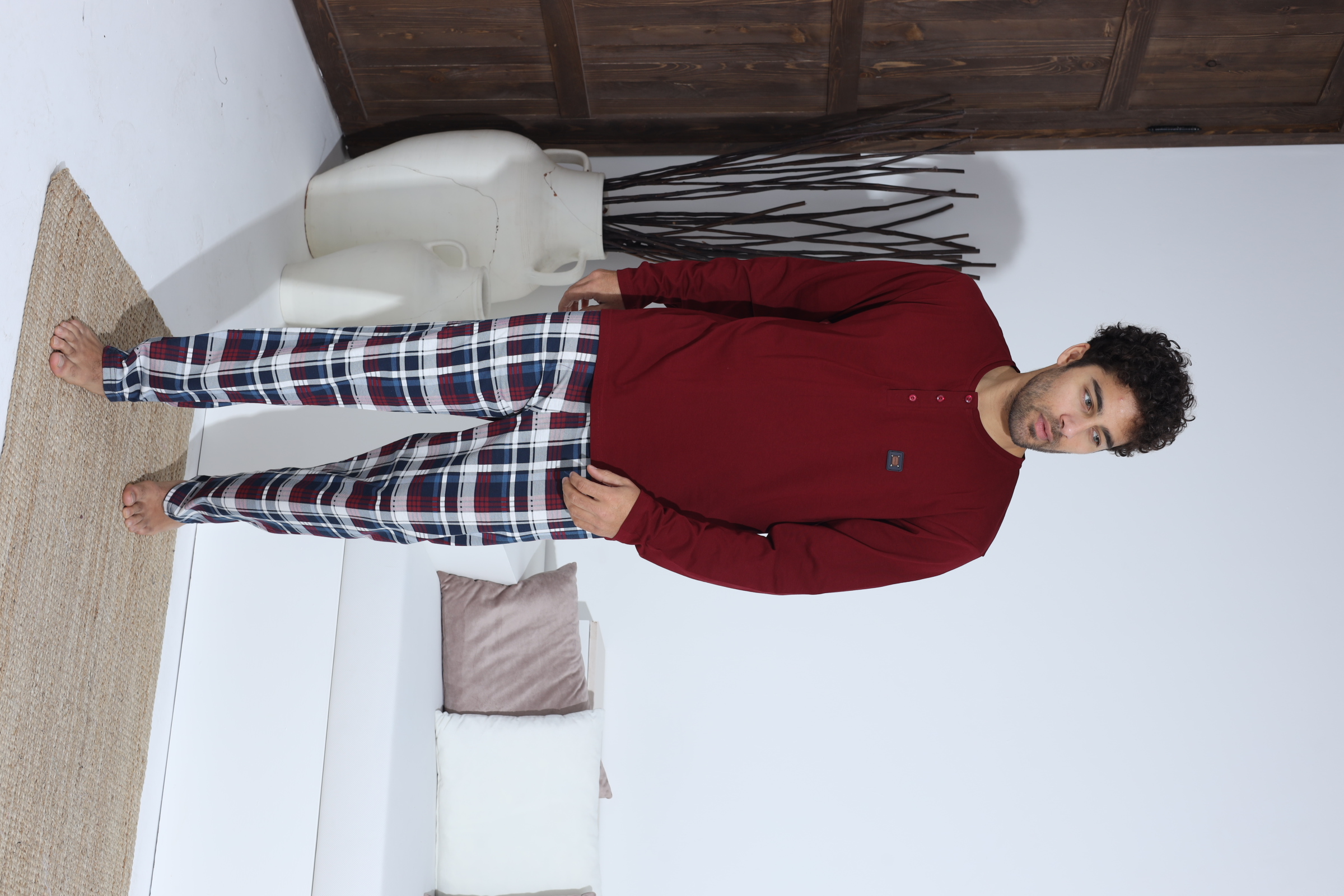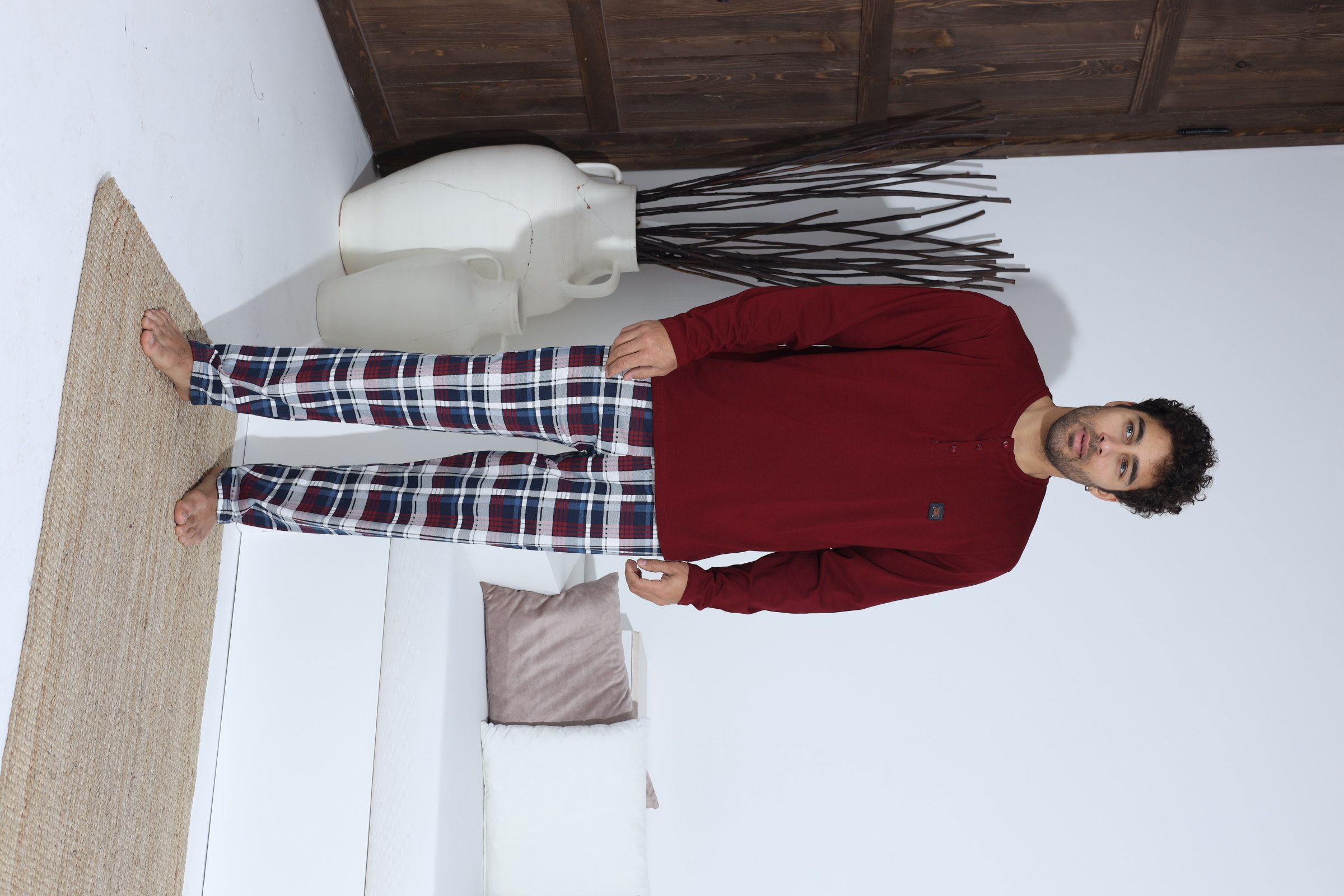 Pijama Barbati ,Maneca si Pantaloni Lungi,Culoare Bordo cu Alb,Engros