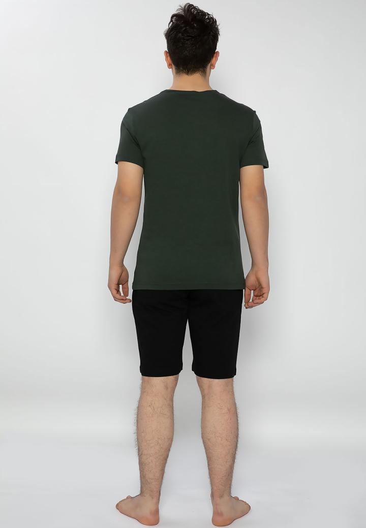 Optează pentru confort și un look fresh cu această pijama bărbătească modernă, ideală pentru nopți liniștite și dimineți relaxate. Tricoul kaki cu design simplu se potrivește perfect cu pantalonii 3/4 într-o nuanță plăcută de negru . Confecționată dintr-un amestec de 50% bumbac și 50% modal, pijamaua oferă o senzație de prospețime, fiind moale, respirabilă și extrem de confortabilă. Designul versatil o face ideală atât pentru somn, cât și pentru purtare zilnică în casă.