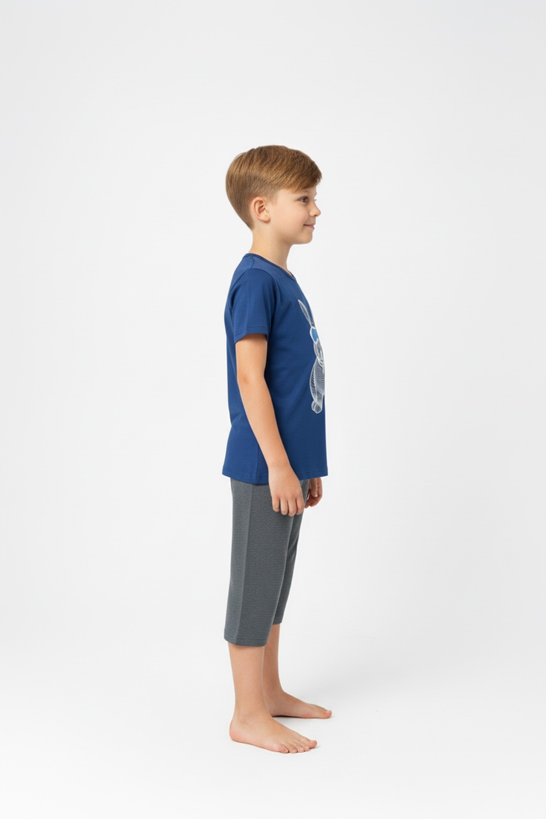 Pijama copii cu maneca scurta si pantaloni 3/4,culoare bleumarin,Engros