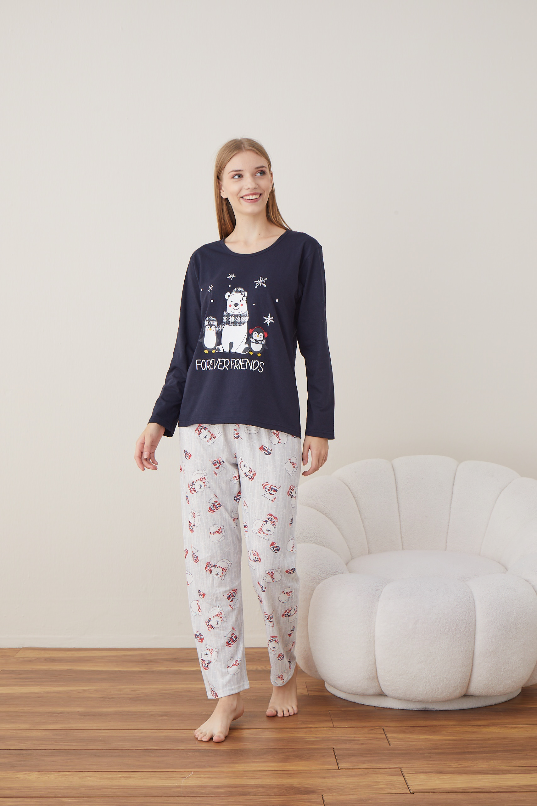 Pijama dama Craciun este alegerea perfectă pentru nopțile reci sau serile de relaxare acasă. Setul include bluză cu mânecă lungă și pantaloni lungi. Materialul moale și plăcut la atingere oferă confort maxim, fiind potrivit atât pentru purtare zilnică, cât și ca idee de cadou de sărbători.