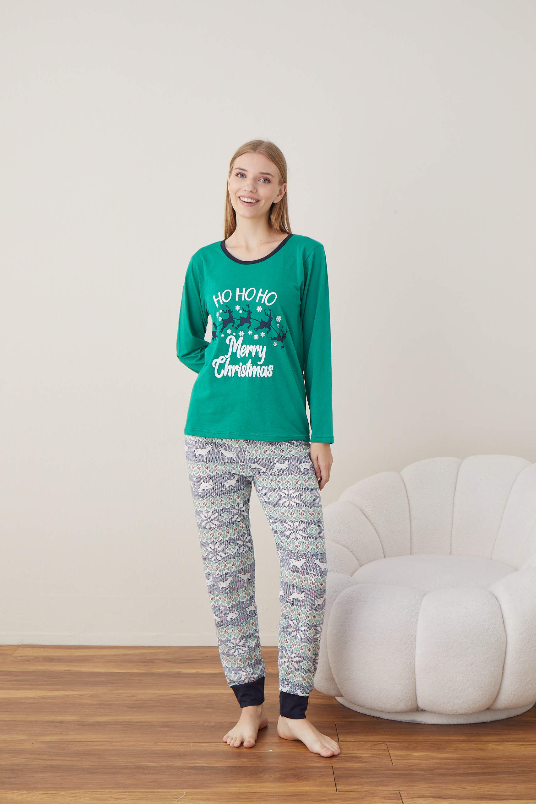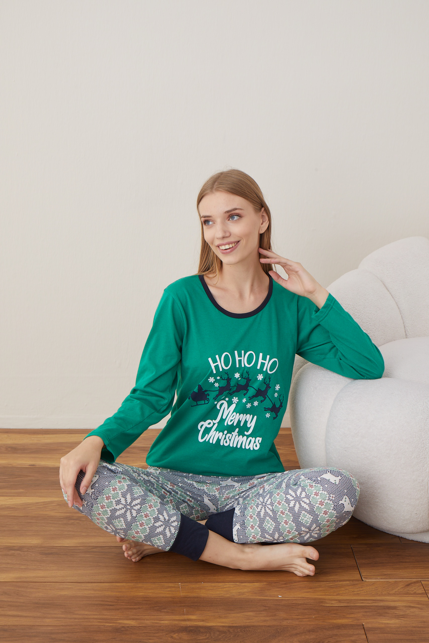 Pijama Dama Craciun " HO HO HO" ,maneca lunga ,pantaloni lungi,Engros
