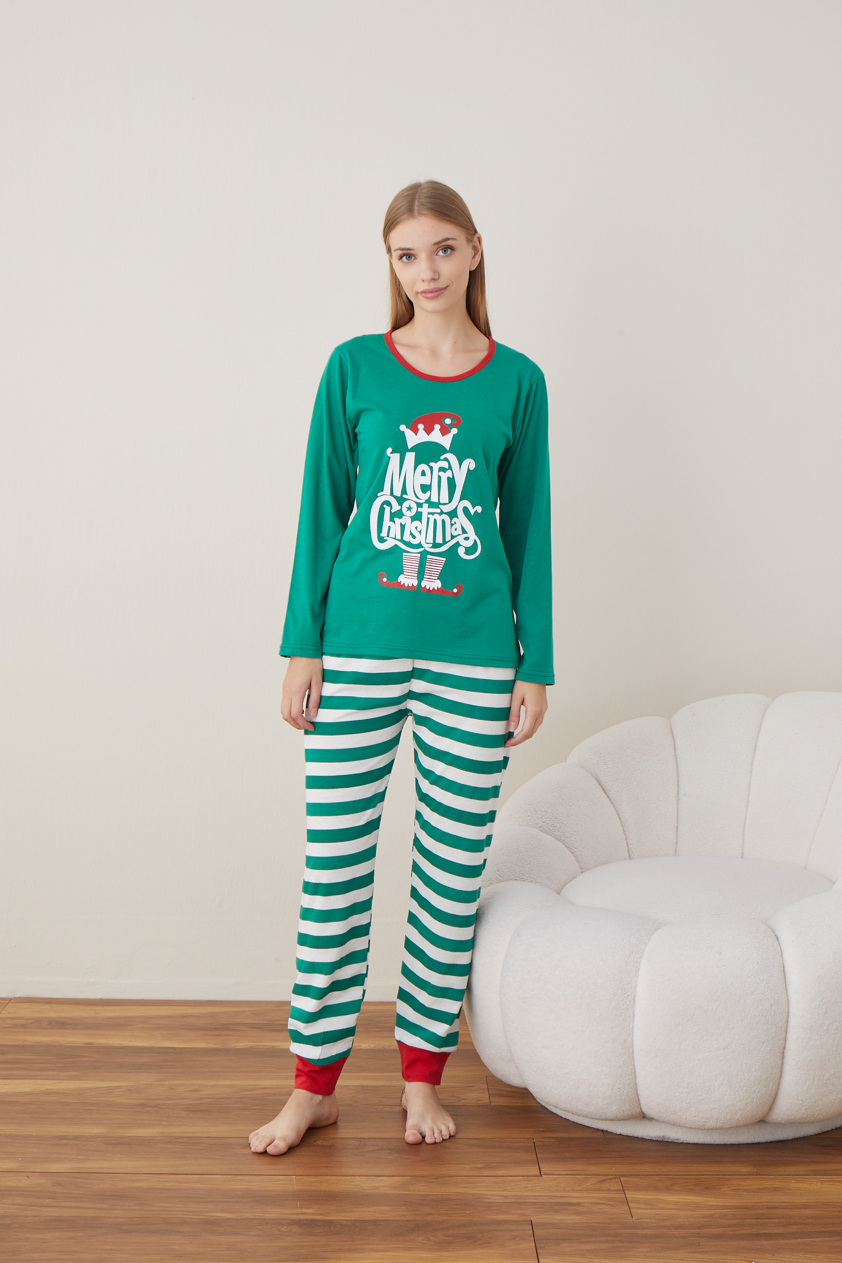 Pijama Dama Craciun "Mery Christhmas" ,maneca lunga ,pantaloni lungi,Engros