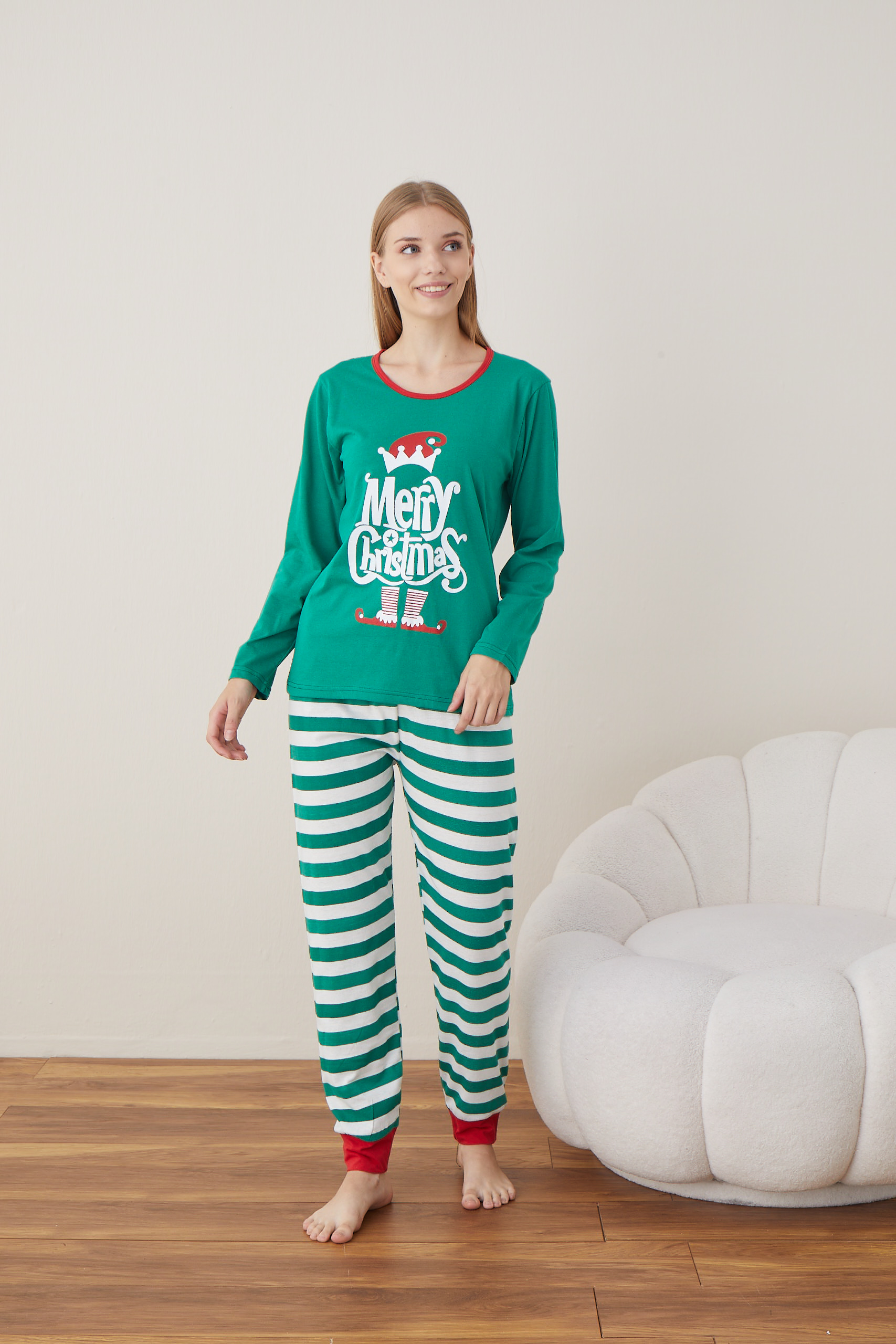 Pijama  dama Craciun  este alegerea perfectă pentru nopțile reci sau serile de relaxare acasă.   Setul include bluză cu mânecă lungă și pantaloni lungi. Materialul moale și plăcut la atingere oferă confort maxim, fiind potrivit atât pentru purtare zilnică, cât și ca idee de cadou de sărbători.