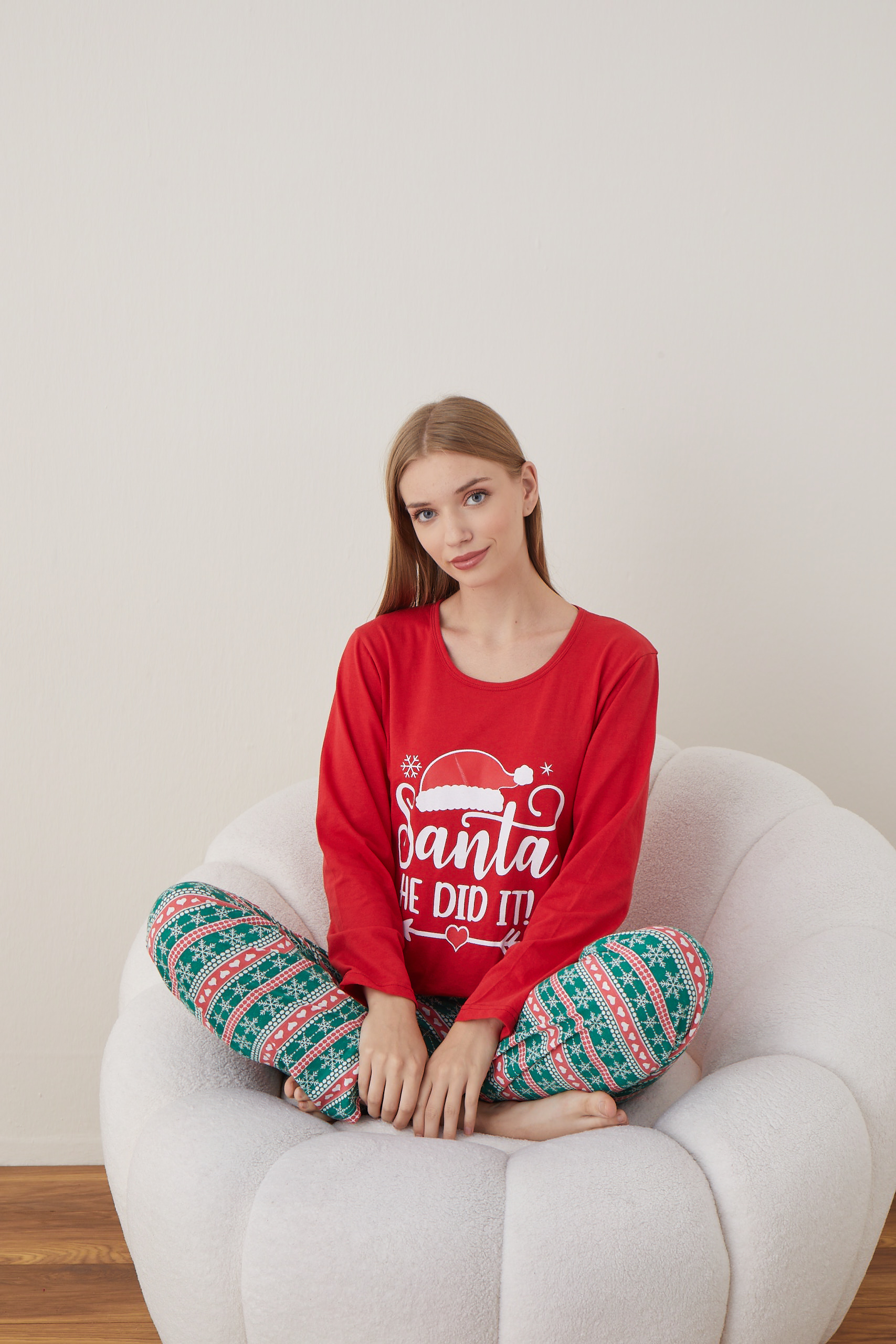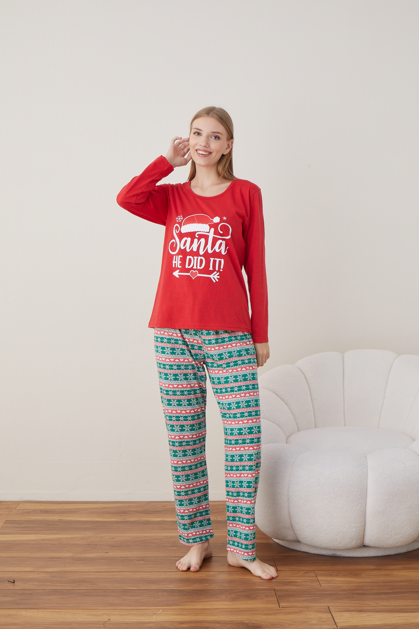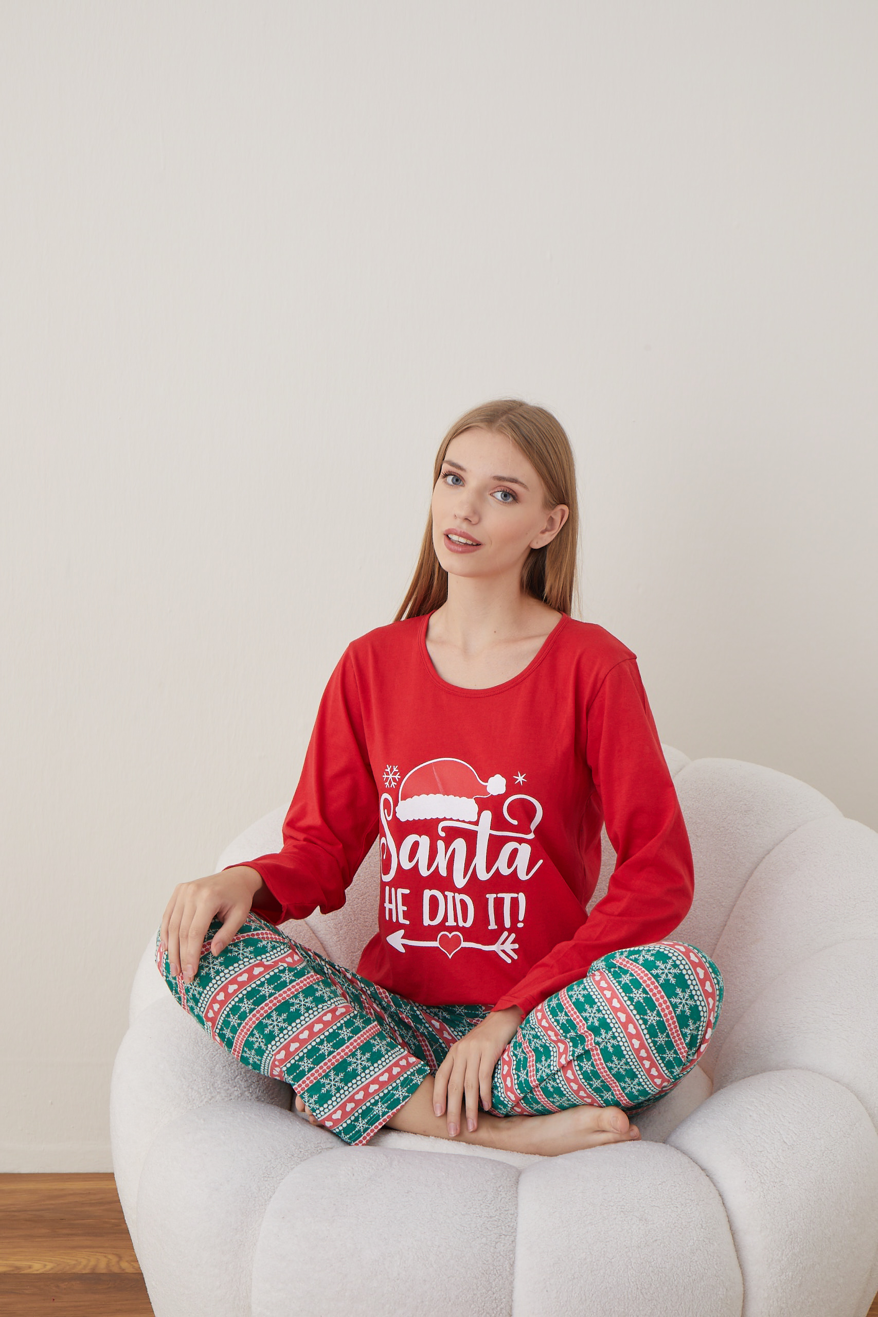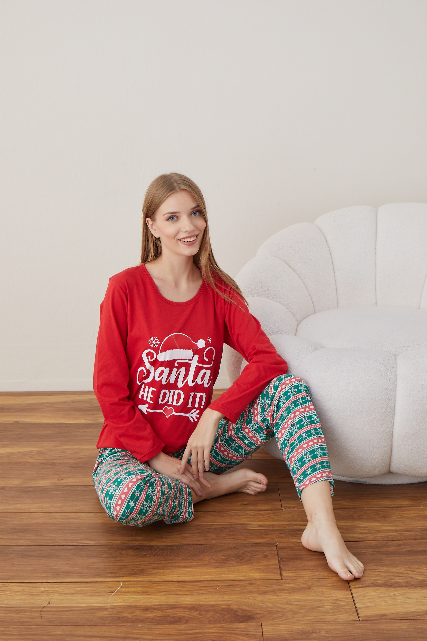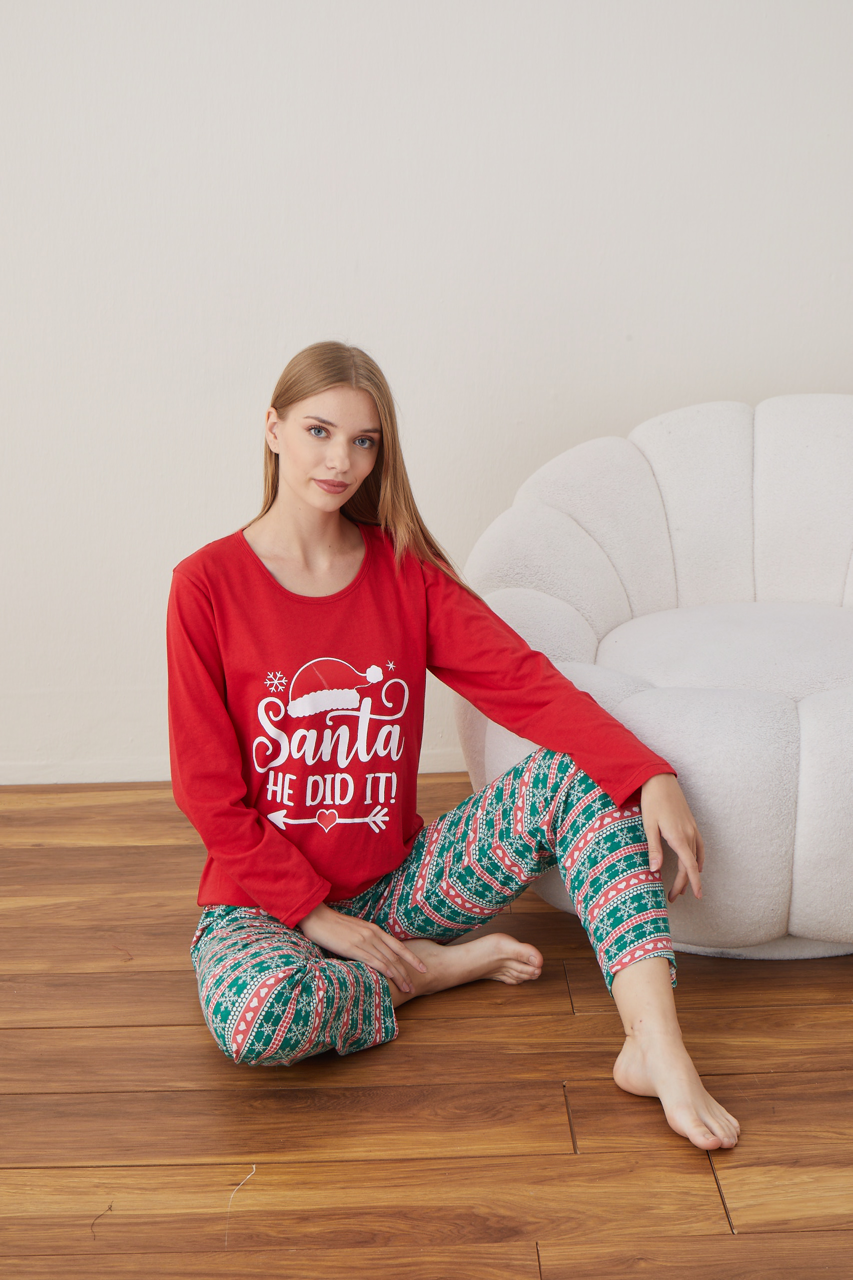 Pijama Dama Craciun " SANTA HE DID IT" ,maneca lunga ,pantaloni lungi,Engros