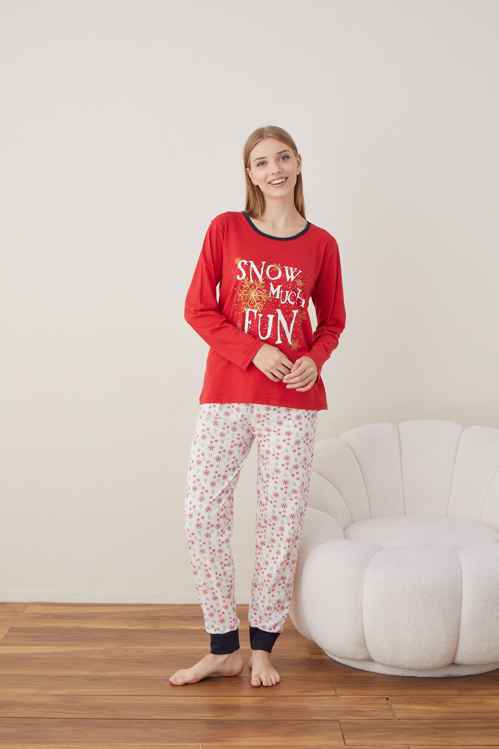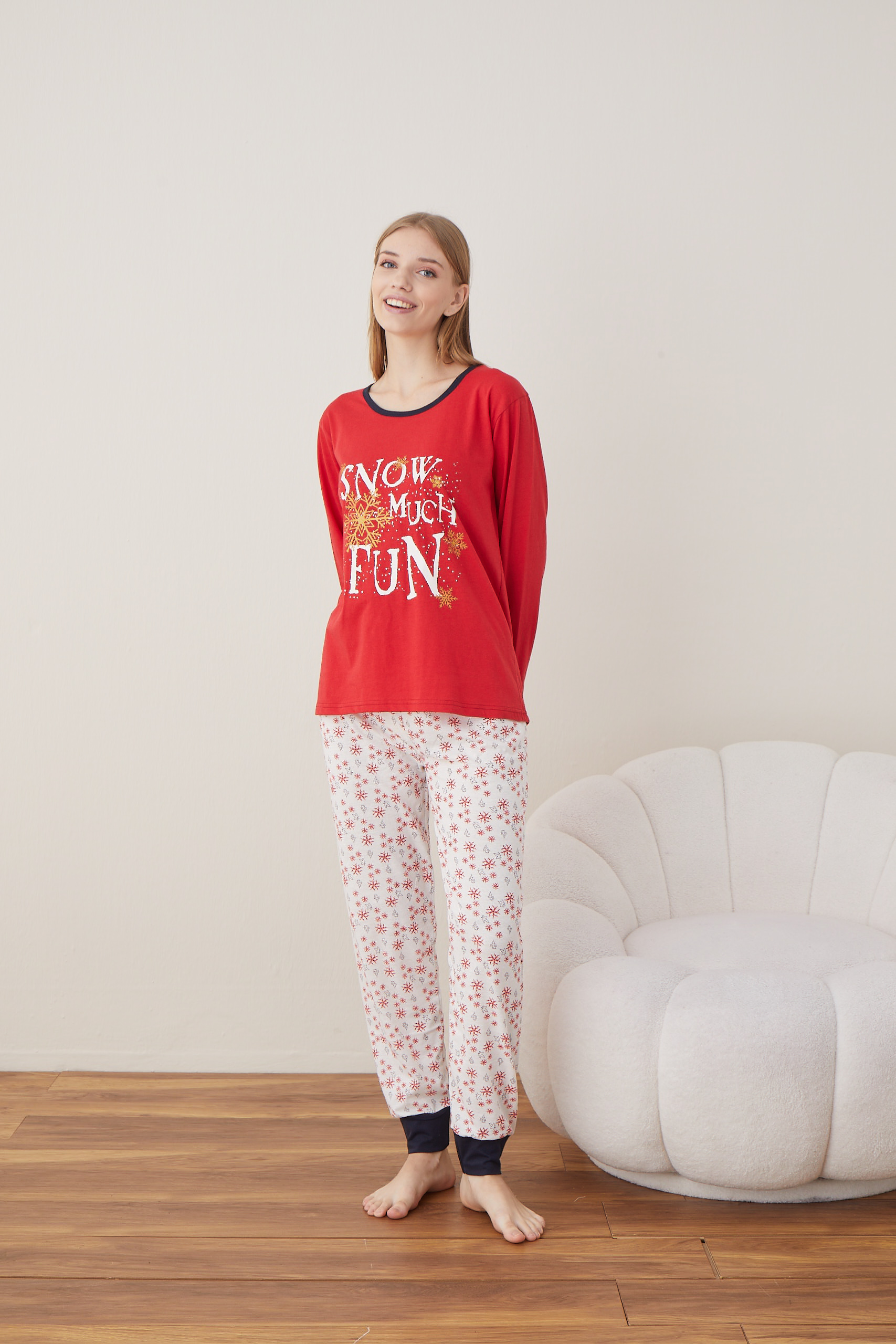 Pijama Dama Craciun " SNOW MUCH FUN " ,maneca lunga ,pantaloni lungi,Engros
