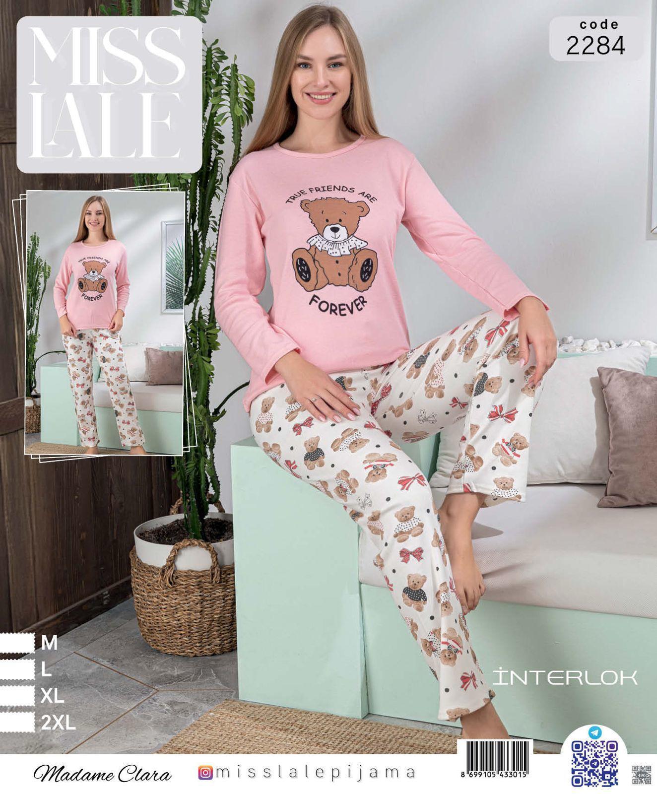 Această pijama din material interlok este perfectă pentru serile reci, fiind moale, călduroasă și plăcută la atingere. Bluza are mâneci lungi și un imprimeu drăgălaș cu ursuleț, în nuanțe de roz care adaugă un plus de feminitate și veselie.
