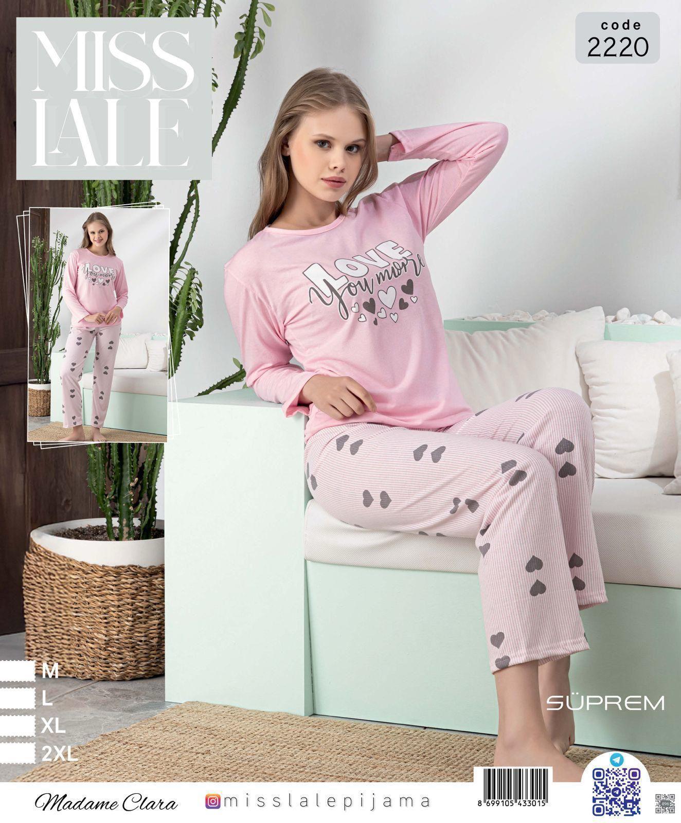 Confecționată din material Suprem – bumbac fin, elastic și plăcut la atingere . Această pijama oferă confort termic și libertate de mișcare.Bluza are mâneci lungi, decorată cu imprimeu romantic cu inimioare, perfectă pentru un look delicat modern.Pantalonii lungi sunt comozi și asortați, ideali pentru purtare zilnică sau relaxare acasă.