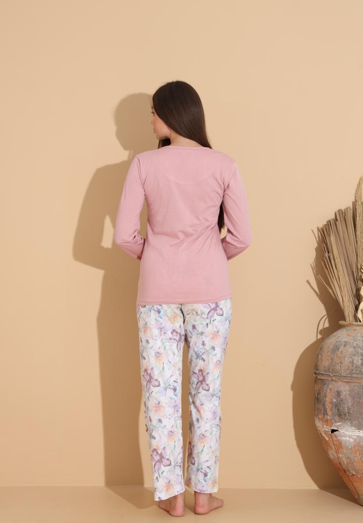 Pijama Dama „You Tight Forever'" ,Pantaloni si Maneca Lunga,Culoare Roz Pudra,Engros