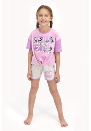 Pijama pentru fetițe cu bluză roz cu mânecă scurtă și imprimeu True Pals, completată cu pantaloni scurți asortați. Confecționată din bumbac și poliester, oferind confort pentru zilele calde.