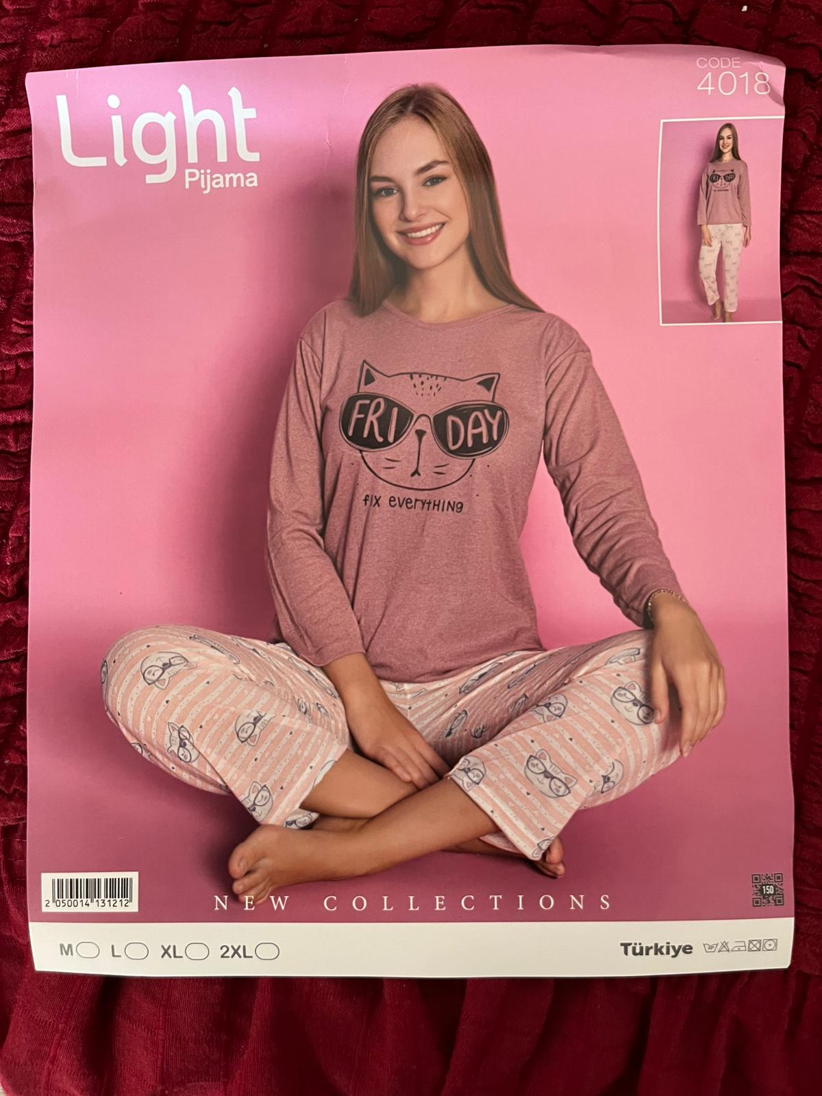 Pijamle, dama cu maneca lunga, ,roz, imprimeu pisica ,Engros