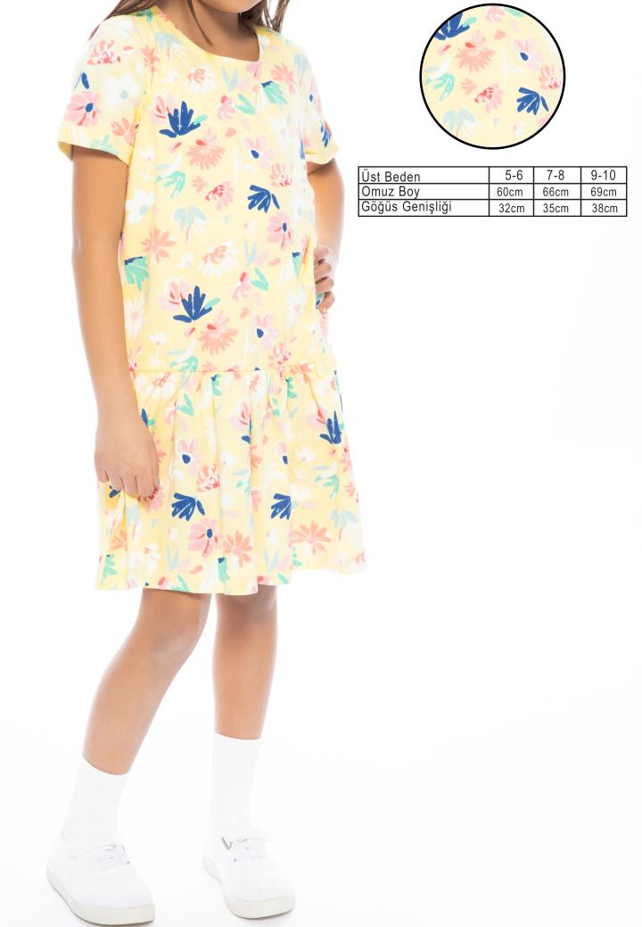 Rochie veselă pentru fetițe, din bumbac 100%, cu imprimeu floral colorat, volănașe și mânecă scurtă – perfectă pentru vară!