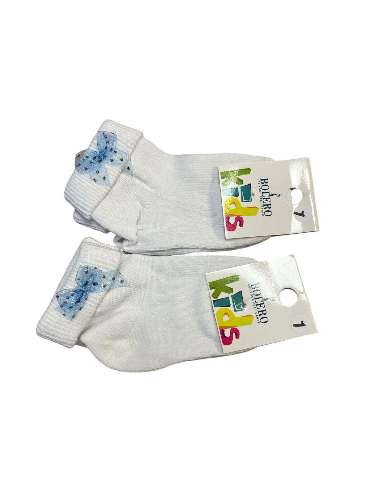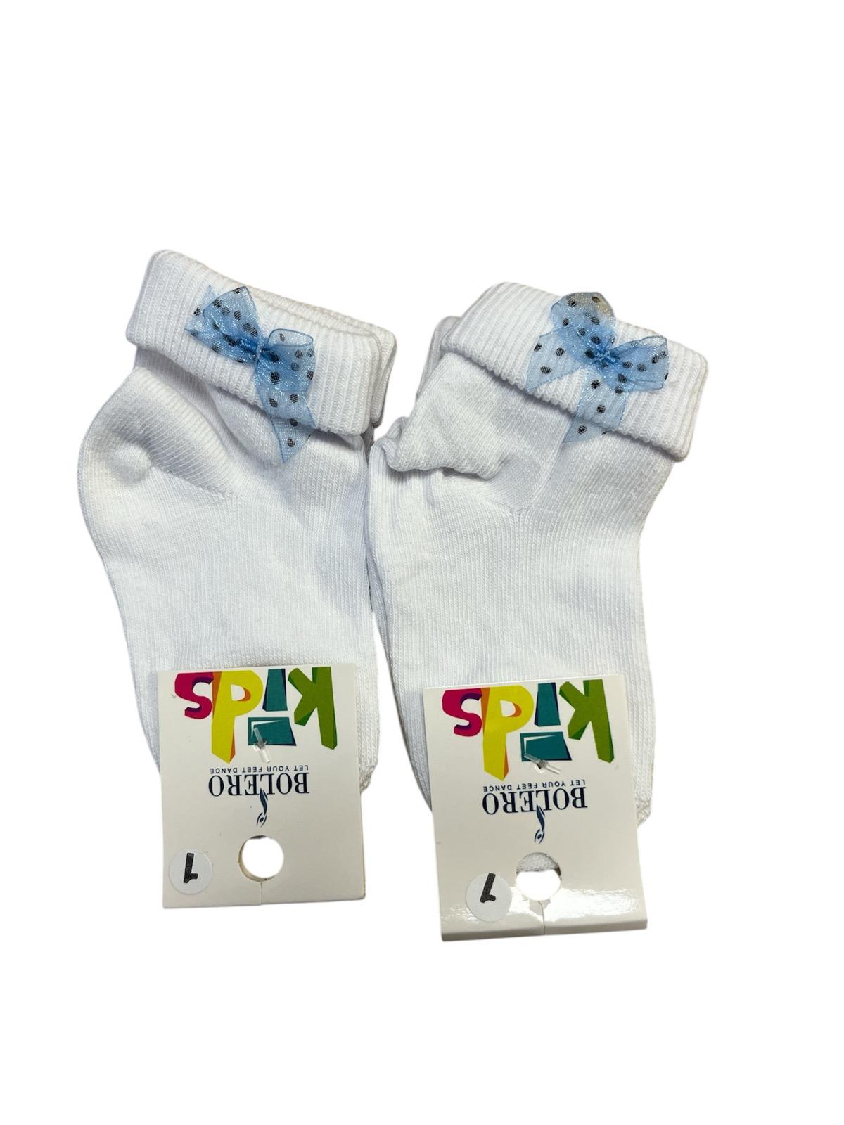 Sosete Copii,Culoare Alb cu Fundita Albastra ,Engros