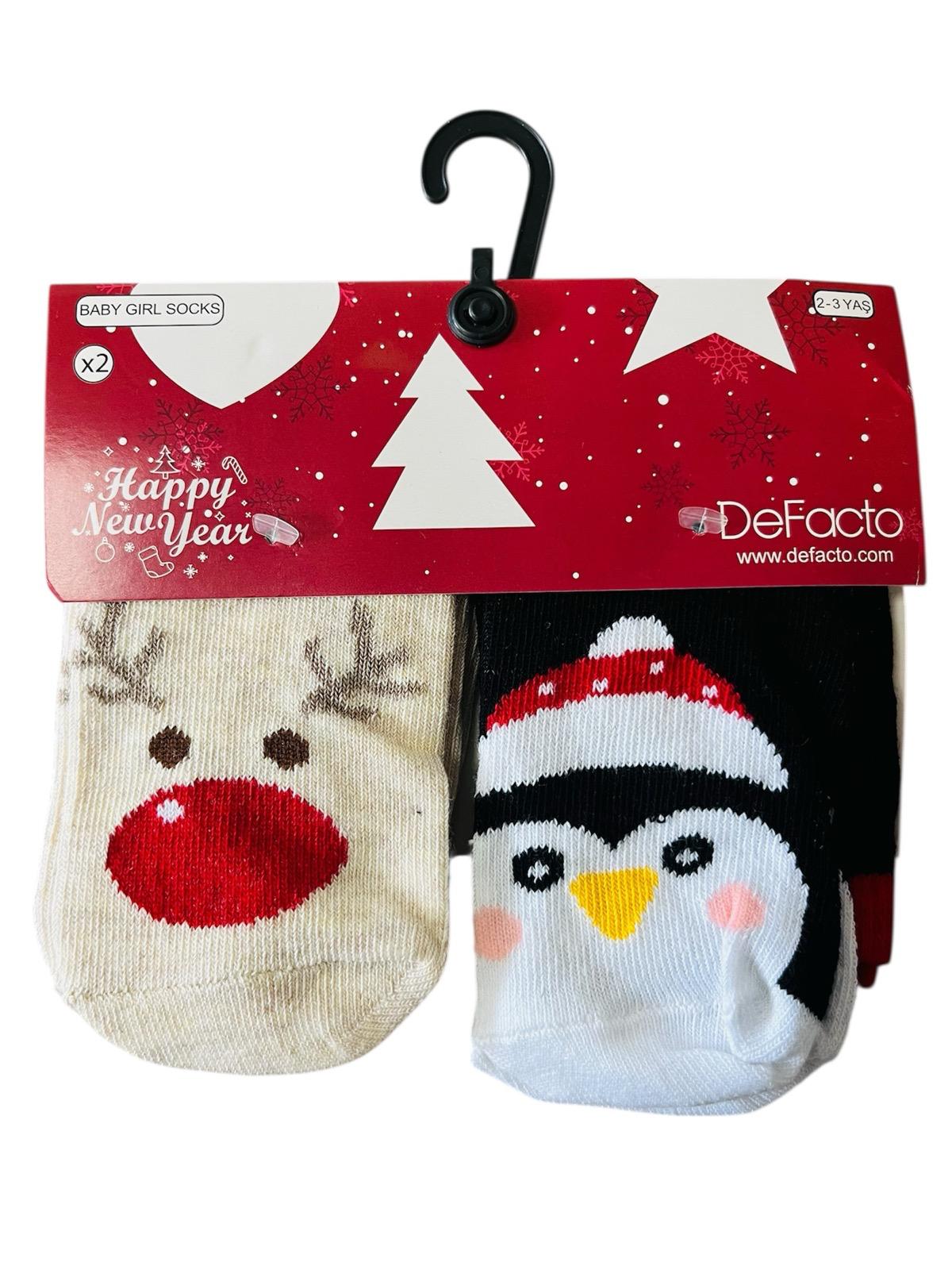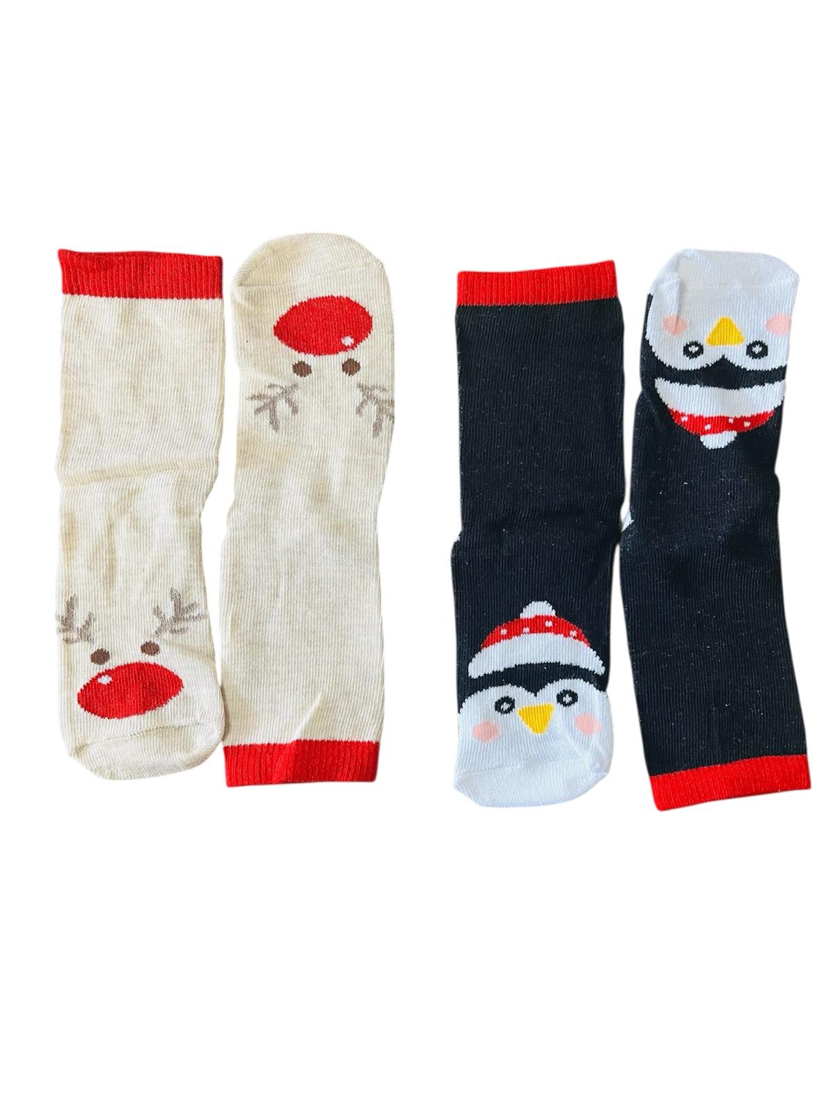 Intră în atmosfera magică a sărbătorilor cu acest set de 2 perechi de șosete de Crăciun pentru copii, decorate cu personaje vesele de iarnă – un ren jucăuș și un pinguin adorabil! Moi, călduroase și colorate, sunt perfecte pentru zilele festive, joacă sau cadouri de sezon.