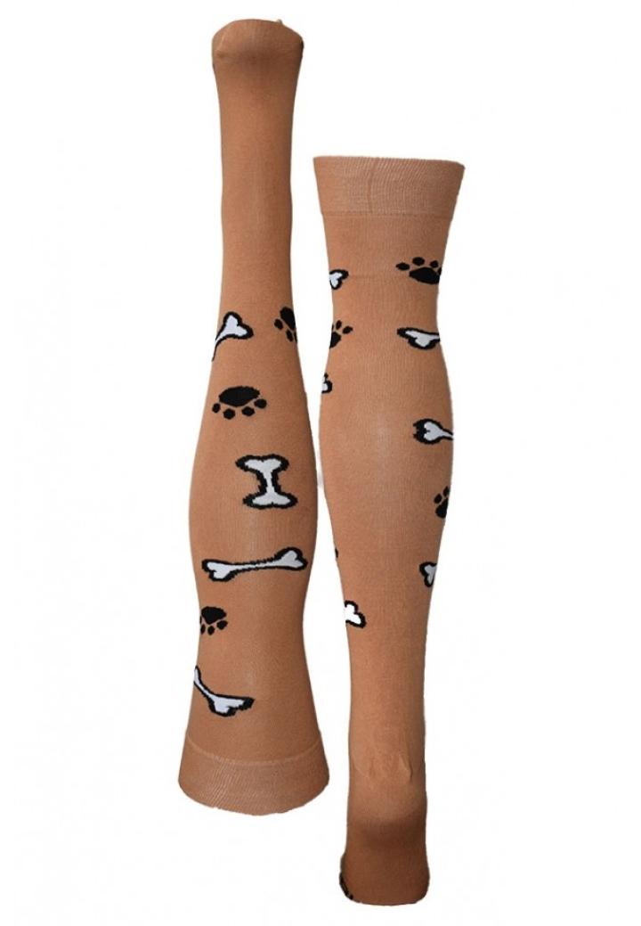 Șosete Damă peste Genuchi, Imprimeu Amprente Catelusi ,Culoare Maro,Engros