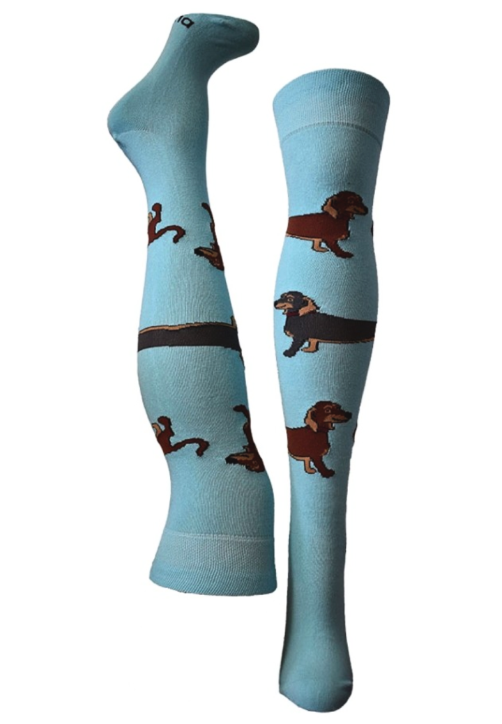Șosete Damă peste Genuchi, Imprimeu Catelusi ,Culoare Albastru,Engros