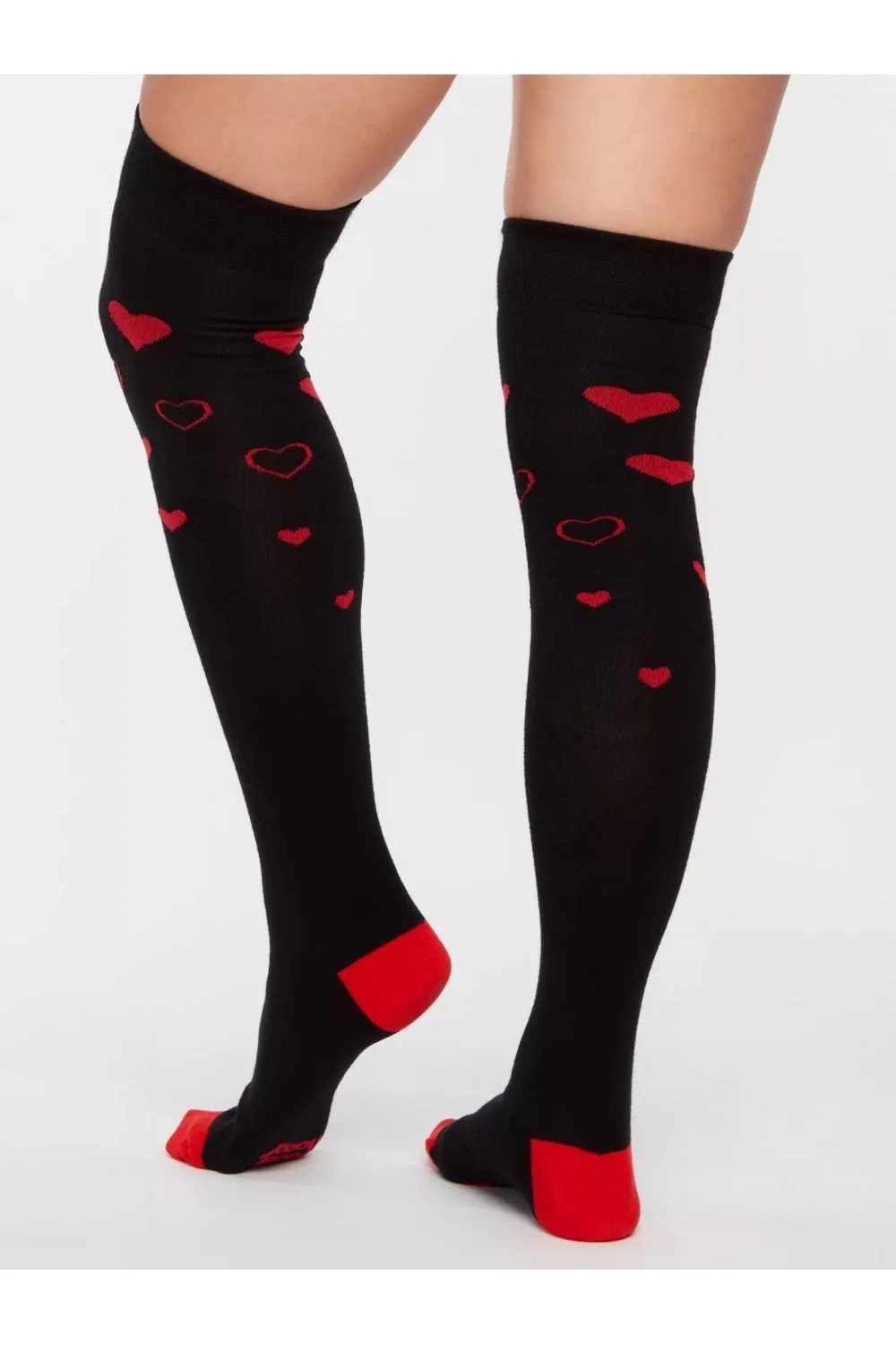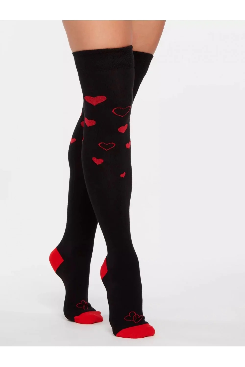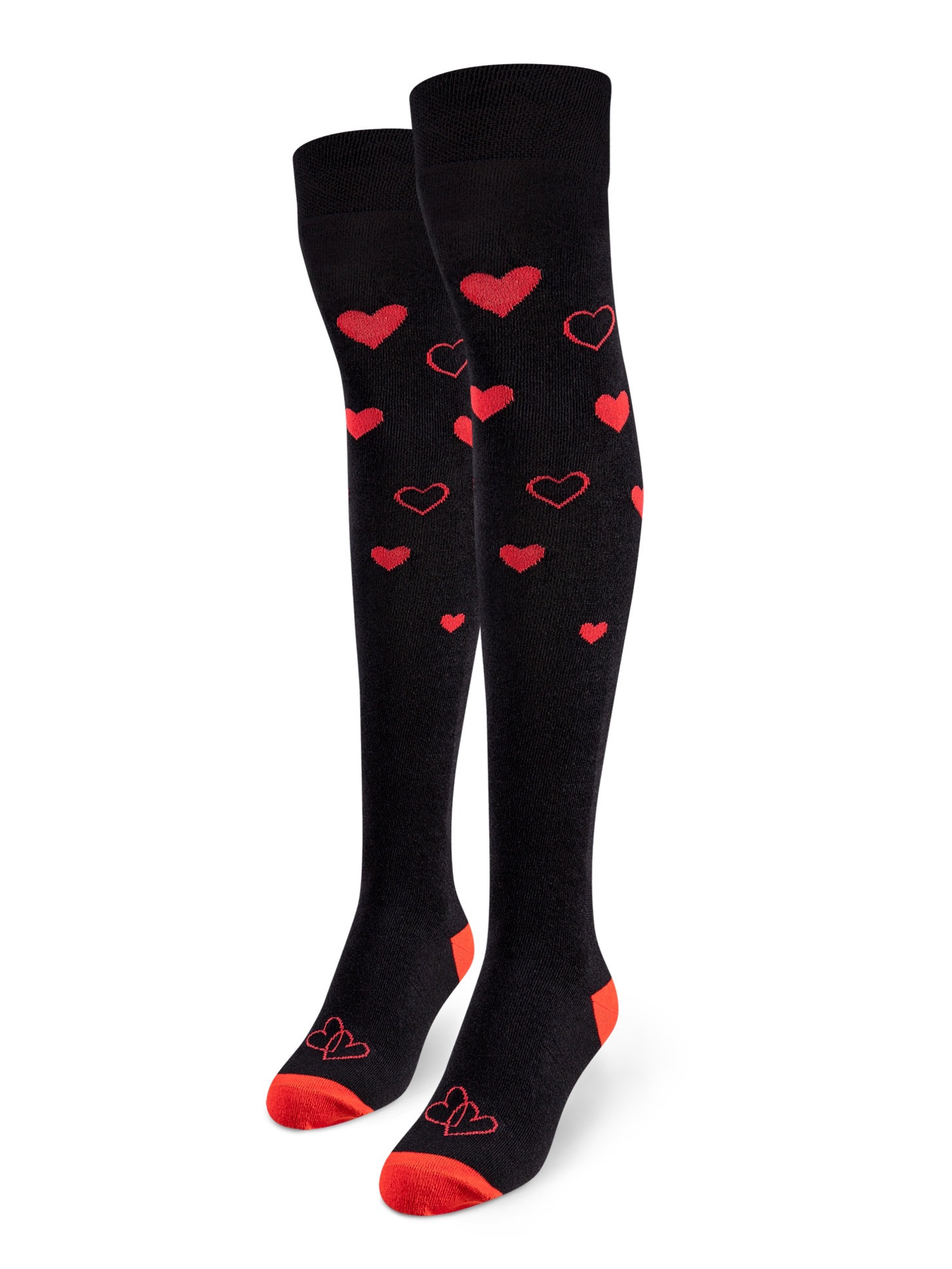 Șosete Damă peste Genuchi, Imprimeu Inimioare ,Culoare Negru,Engros