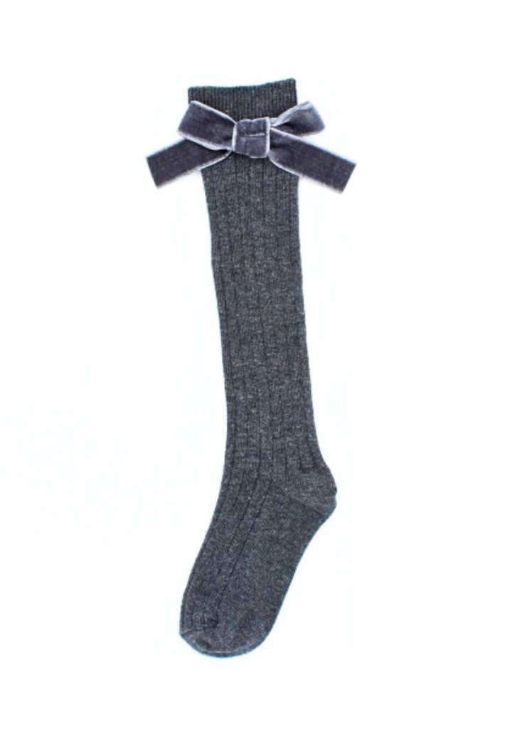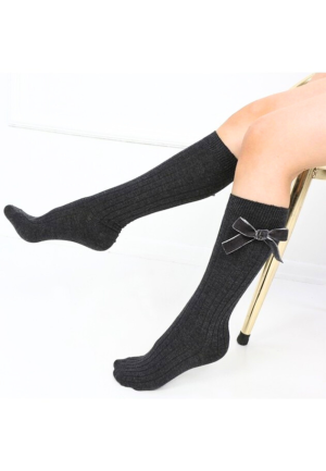Șosete fetițe 3/4, bumbac, cu fundiță decorativă,Gri, Engros