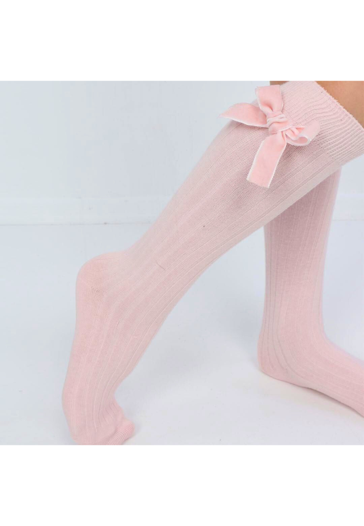 Șosete fetițe 3/4, bumbac, cu fundiță decorativă,culoare Roz , Engros