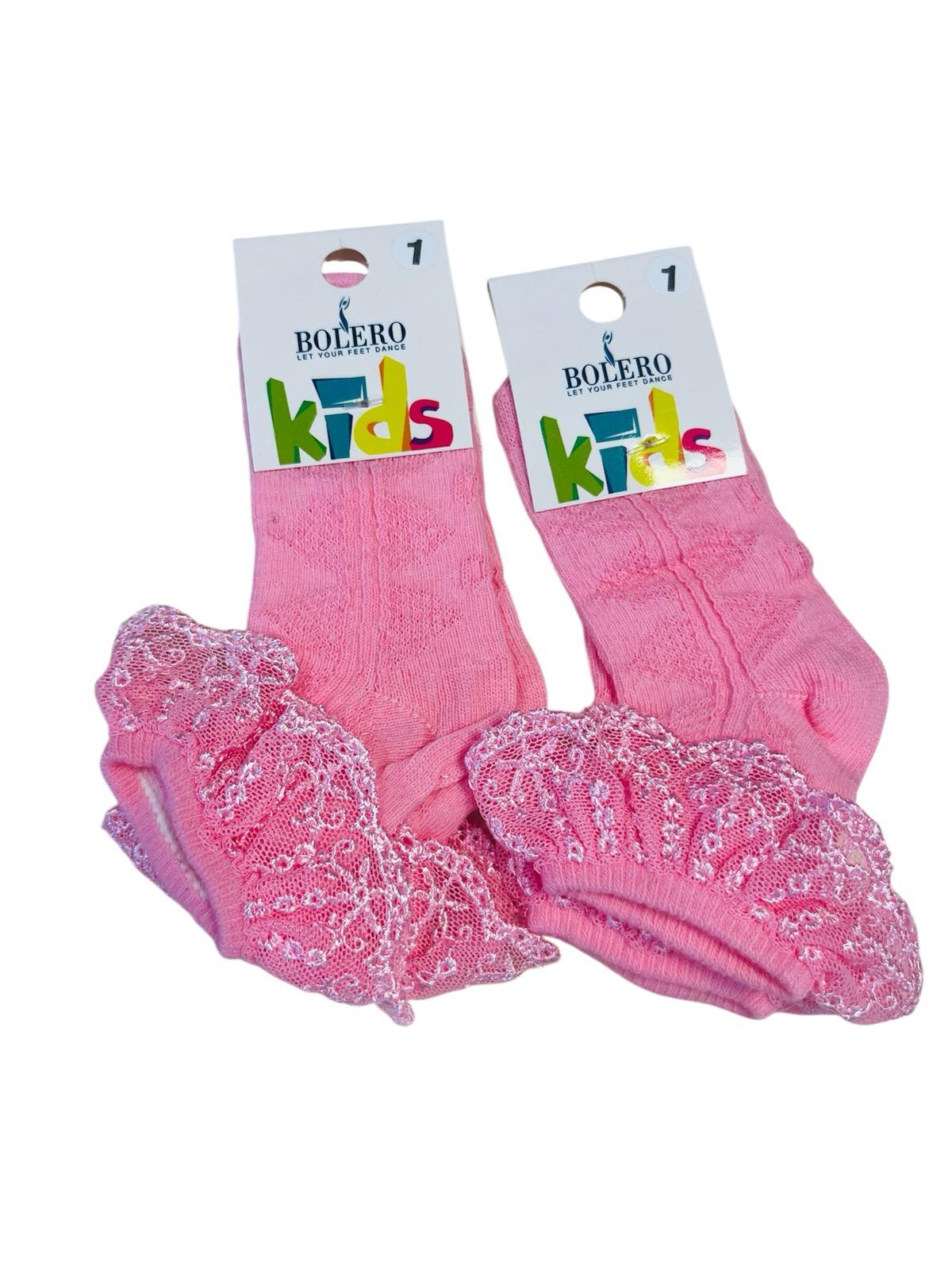 Sosete fetite cu Broderie,Culoare Roz ,Engros