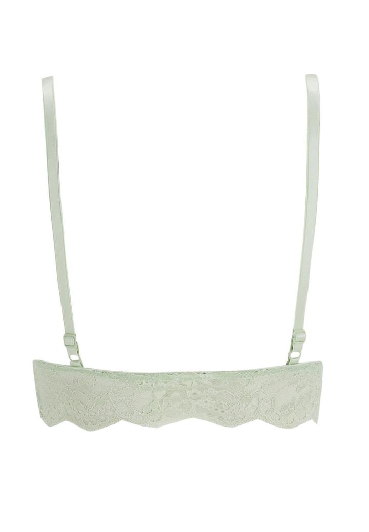 Sutien damă din dantelă model Serena, culoare verde – delicat, feminin și confortabil, cu burete, fără push-up, bretele reglabile pe dimensiune, dar nedetasabile, fără balene de susținere.