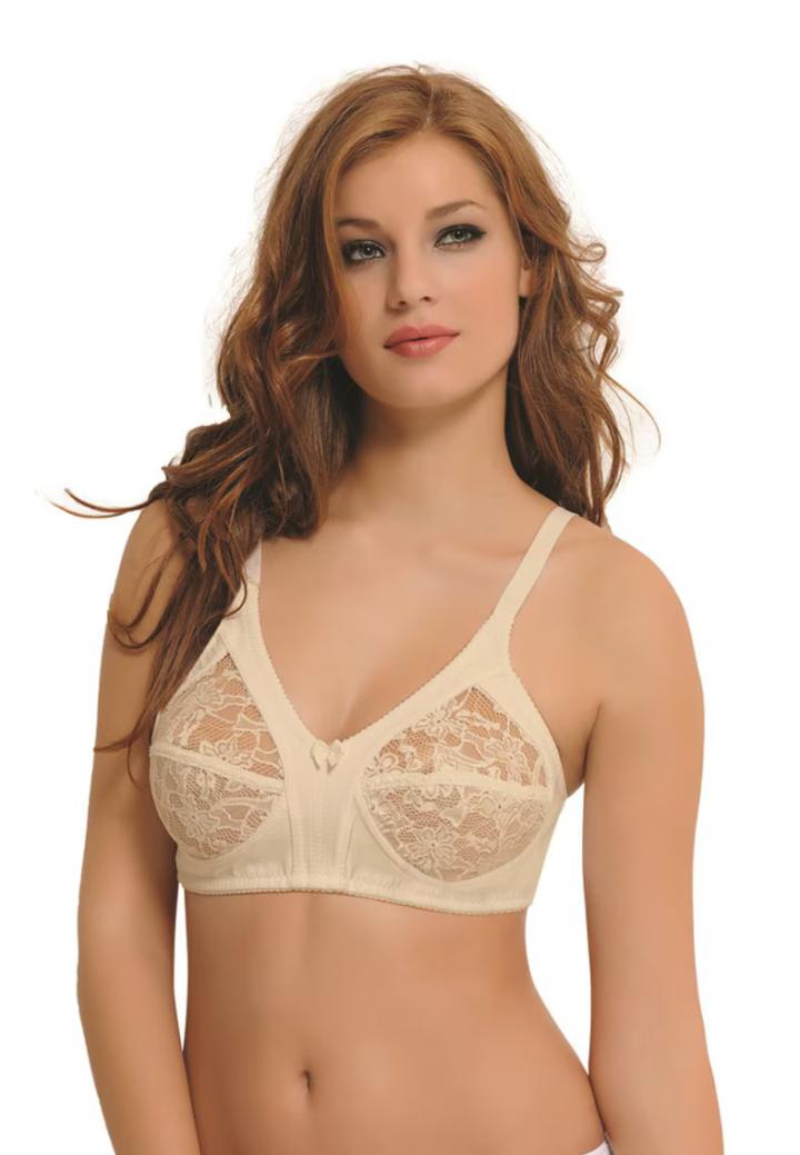 Sutien minimizator din dantelă și microfibră elastică, fără balene, cu susținere mare. Oferă confort, susținere și un efect elegant de remodelare a bustului.
